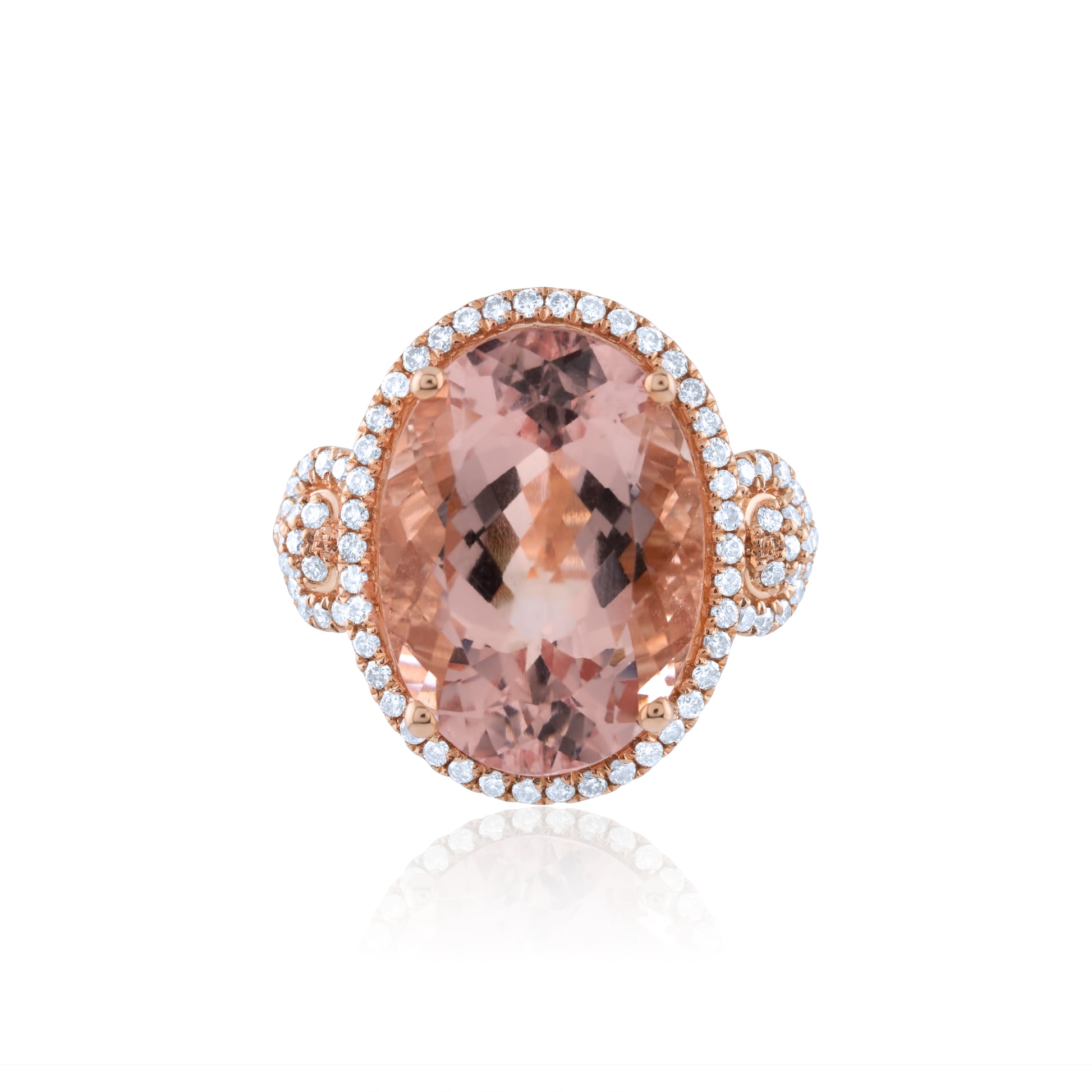 14K Rose Gold Diamond Halo Morganite Statement Ring ~ 15 Ct