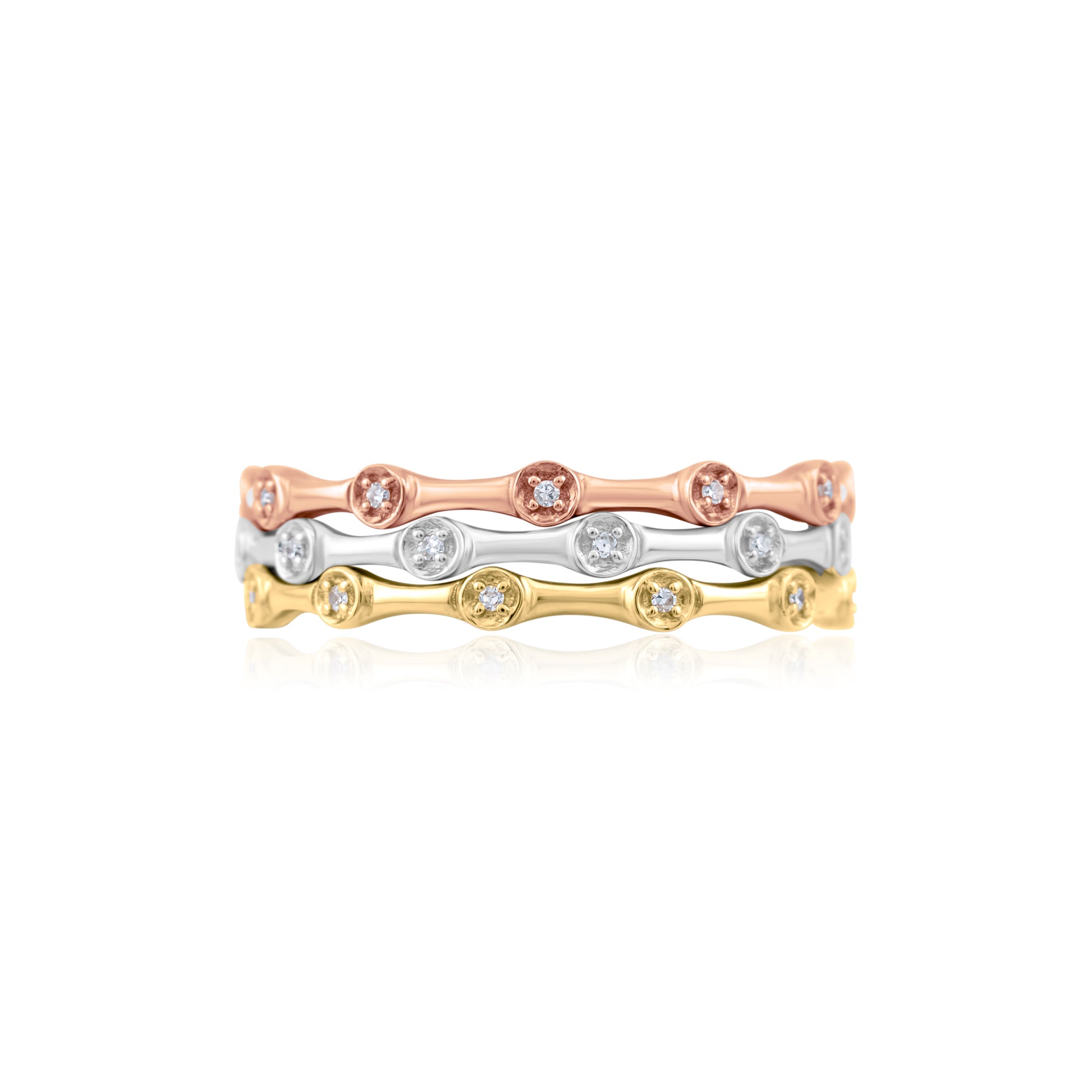14K Three-Tone Gold Diamond Stackable Bands 1/10 Ct