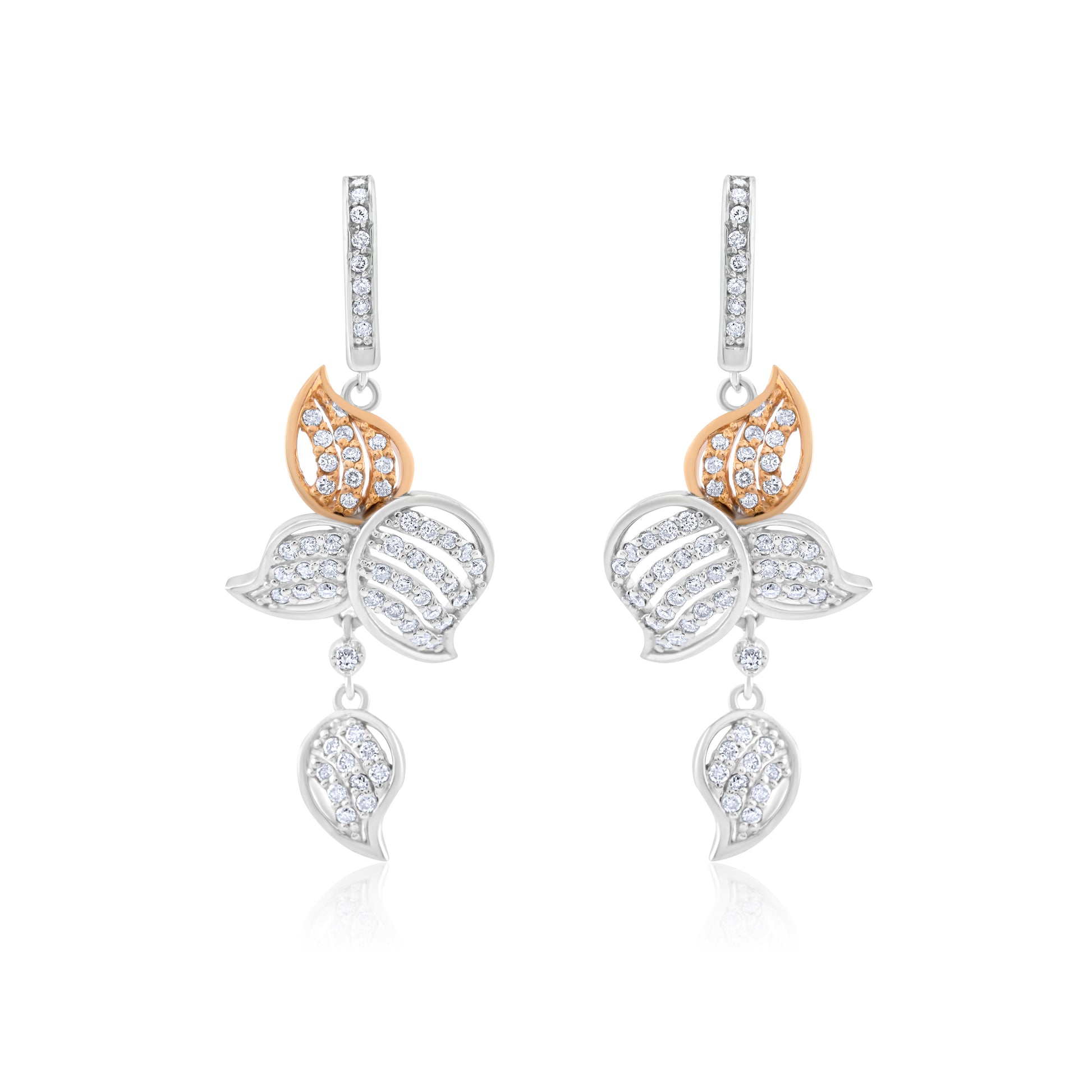 14K Two-Tone Gold Diamond Floral Earrings ~ 1 Ct