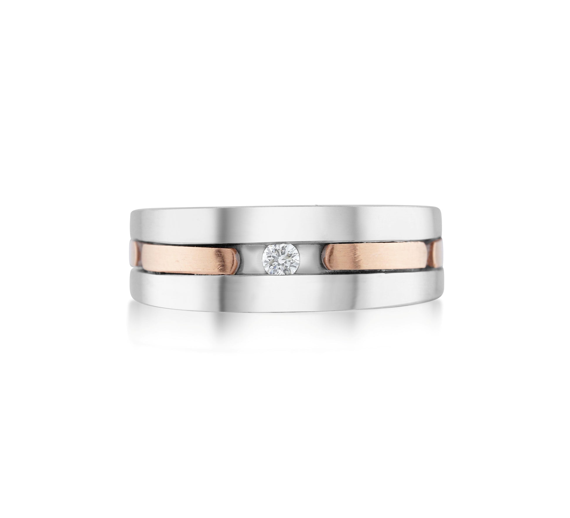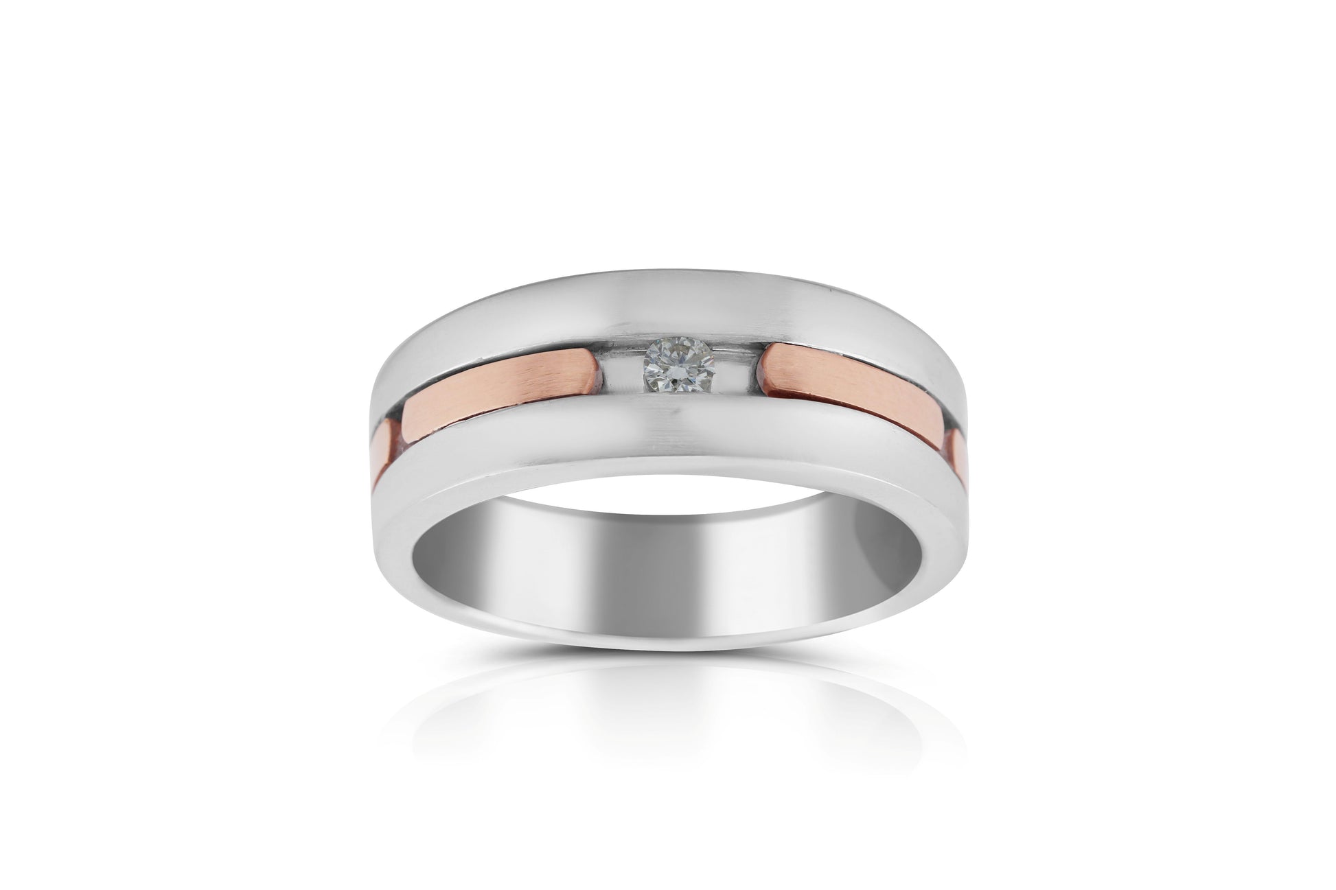 14K Two-Tone Gold Single Diamond Men’s Band ~ ¼ Ct