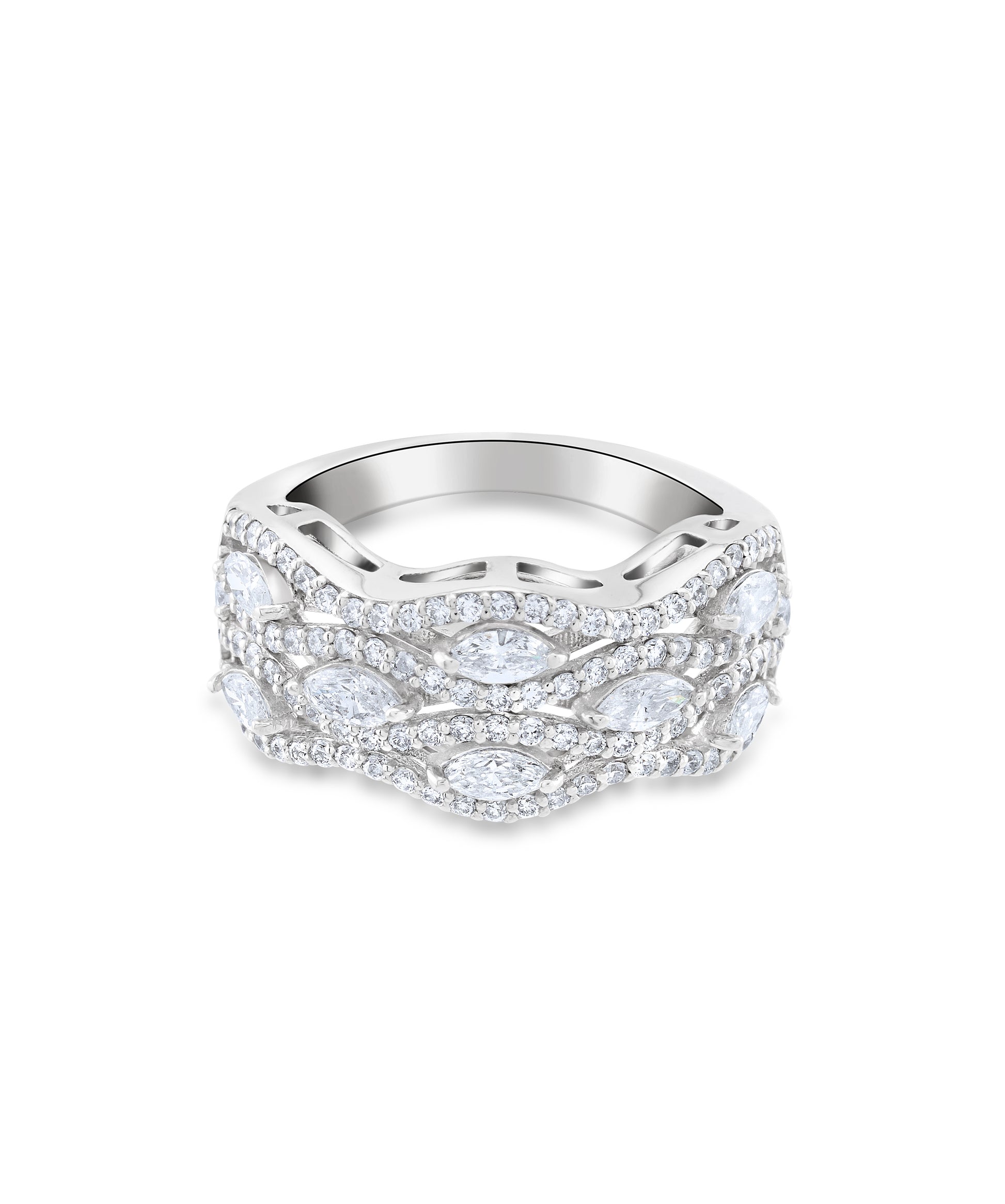 Make every milestone unforgettable with this intricately designed anniversary ring, where shimmering waves of diamonds flow in perfect harmony. A bold yet graceful expression of love, crafted to captivate with every glance.