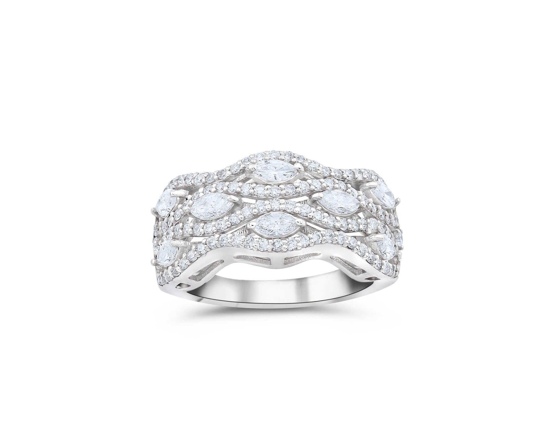 14K White Gold Diamond Anniversary Ring 1.5 Ct