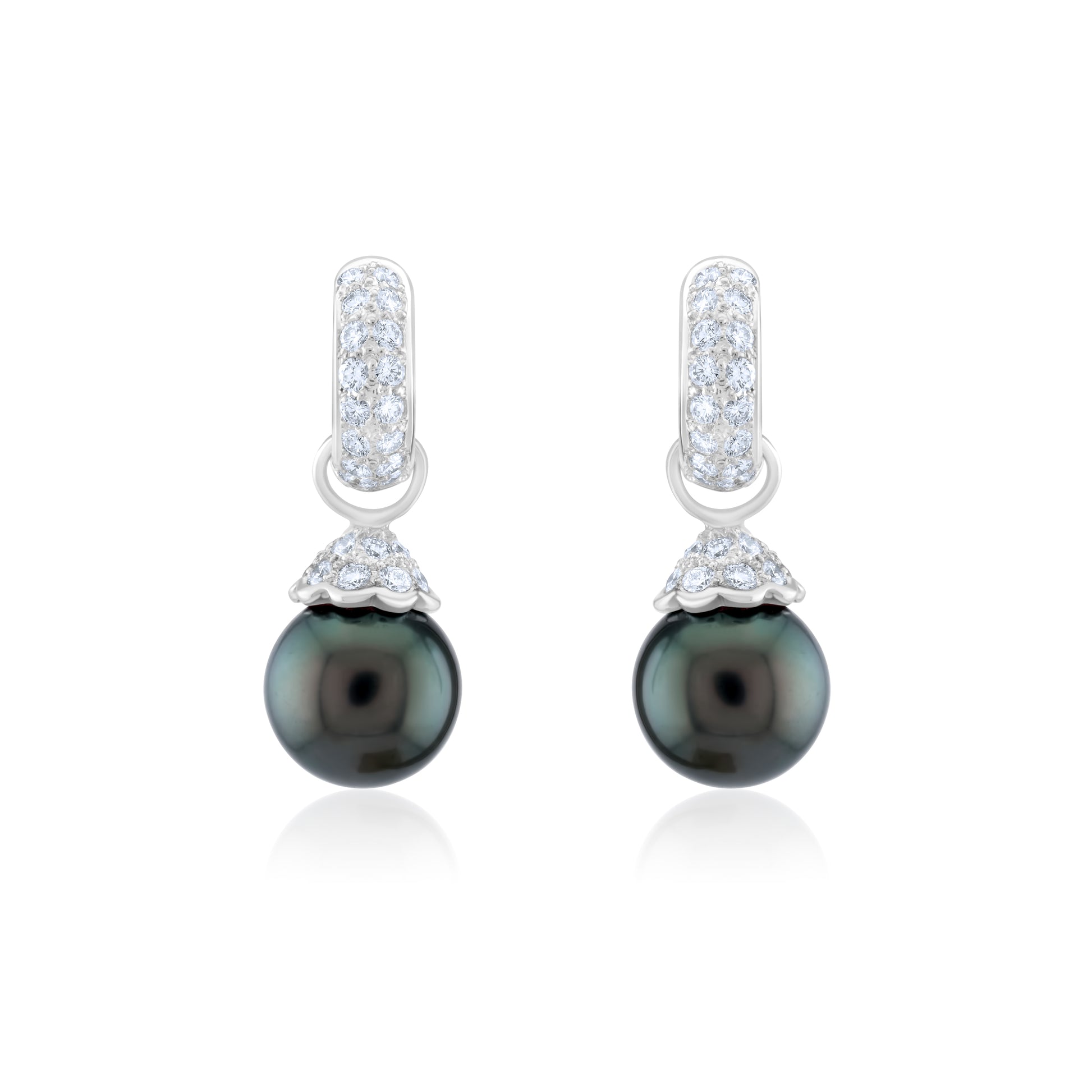 14K White Gold Diamond & Black Pearl Drop Earrings ~ 1 Ct