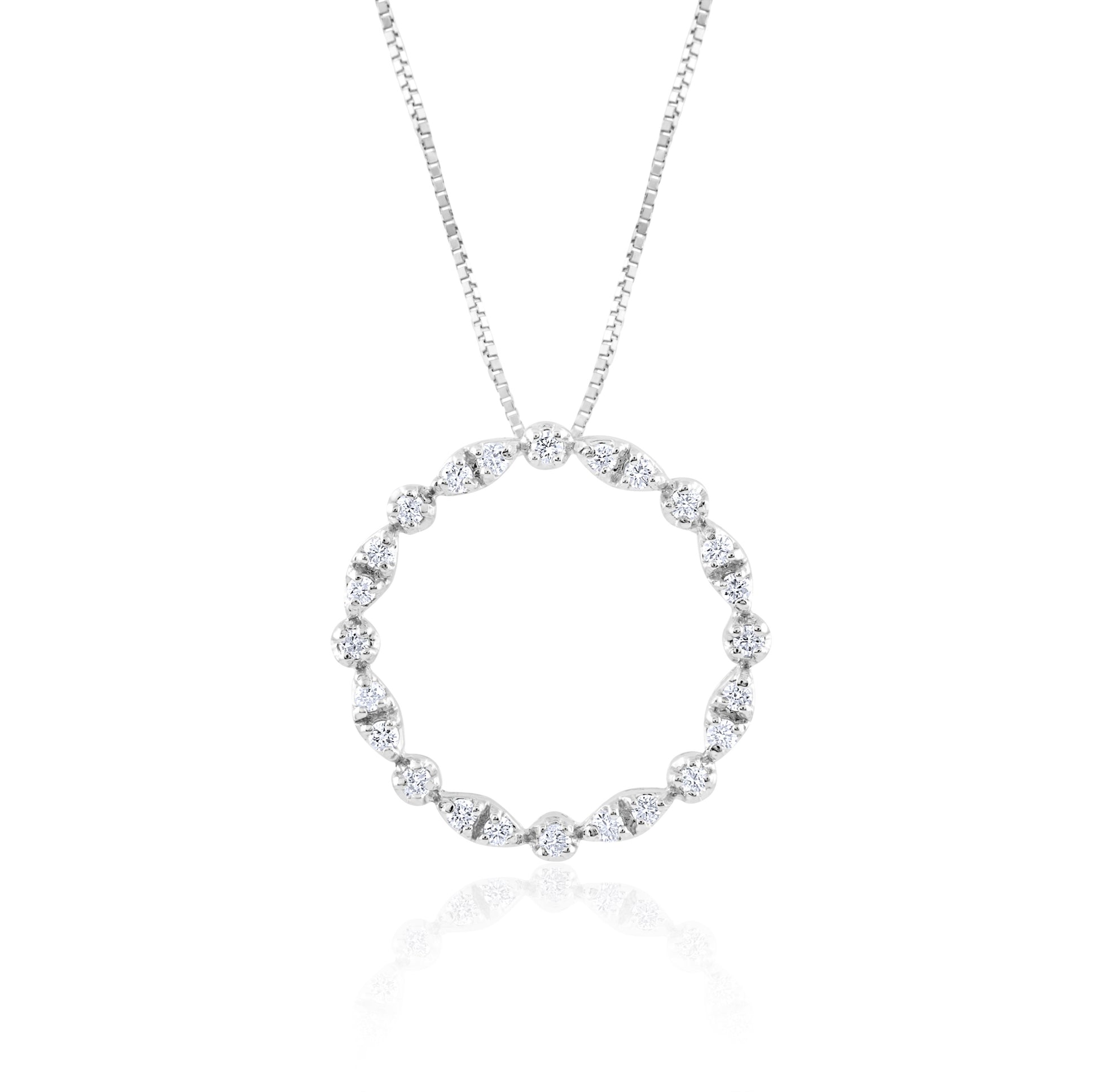 A timeless symbol of unity and grace, this diamond circle pendant shimmers with infinite elegance. Each stone reflects harmony and light, capturing the beauty of life’s endless connections.