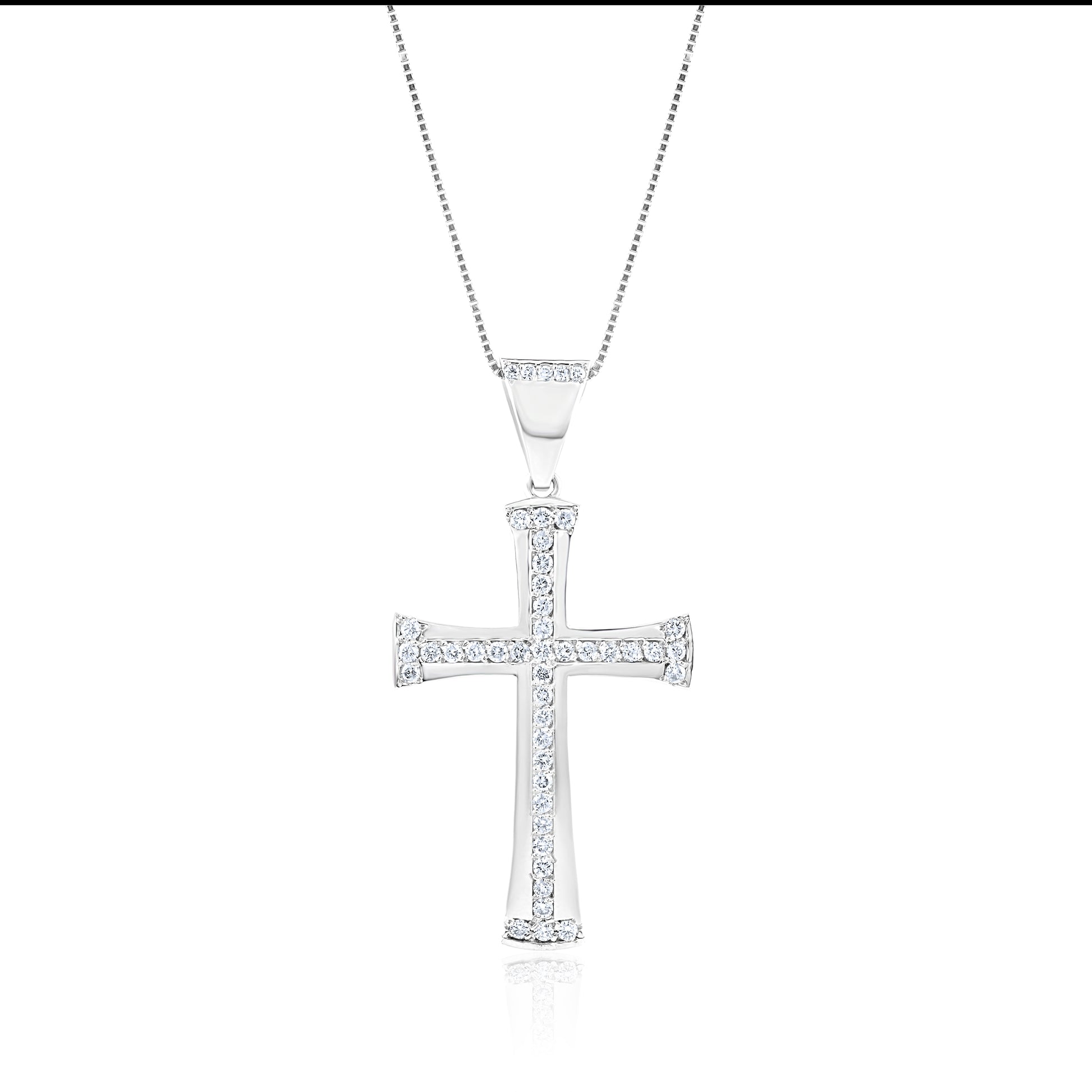 An eternal symbol of faith and light, this diamond cross pendant radiates purity and devotion in every facet. Gracefully crafted in white gold, it shines as a timeless emblem of love and spiritual beauty.
