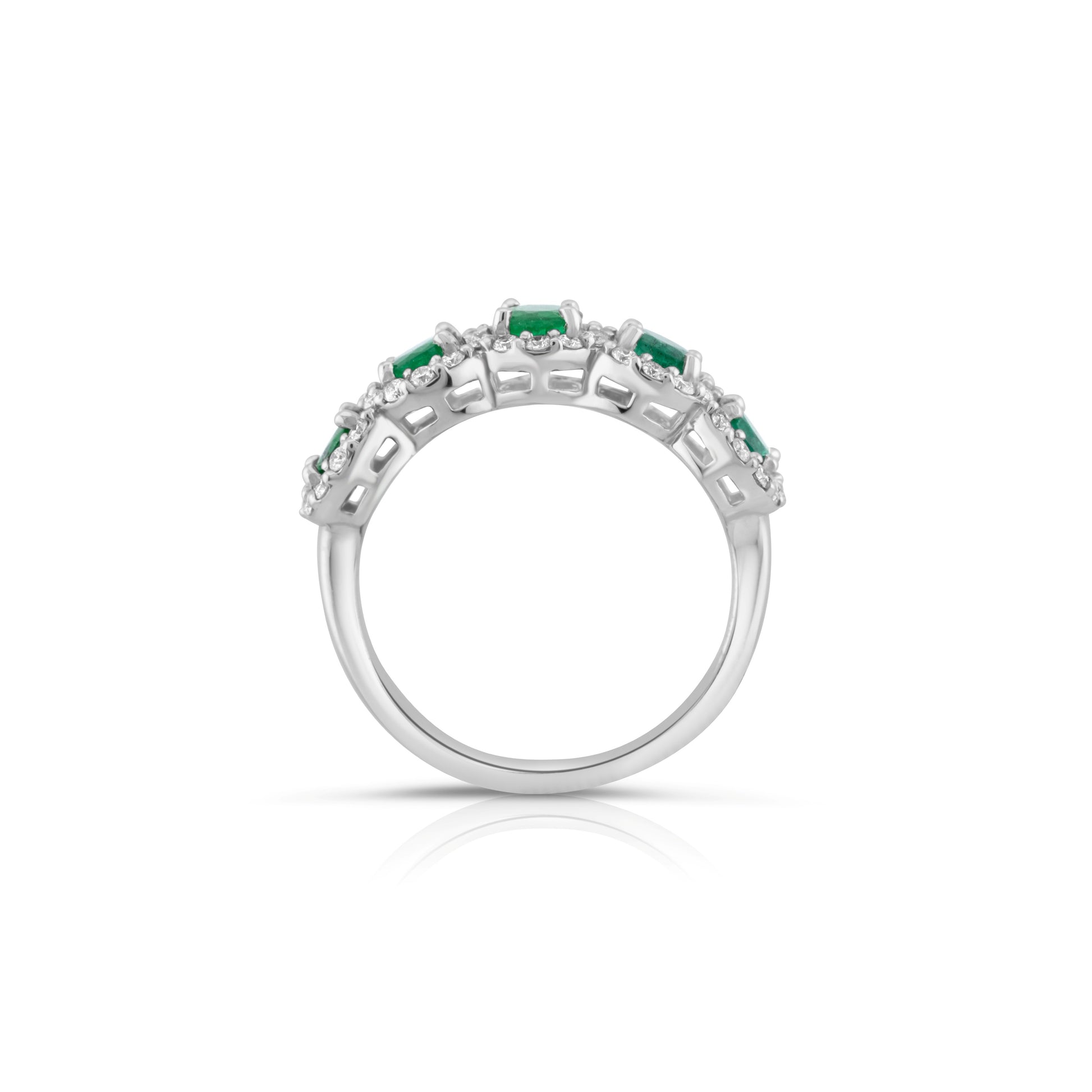 14K White Gold Diamond & Emerald Halo Five-Stone Band ~ 2 Ct