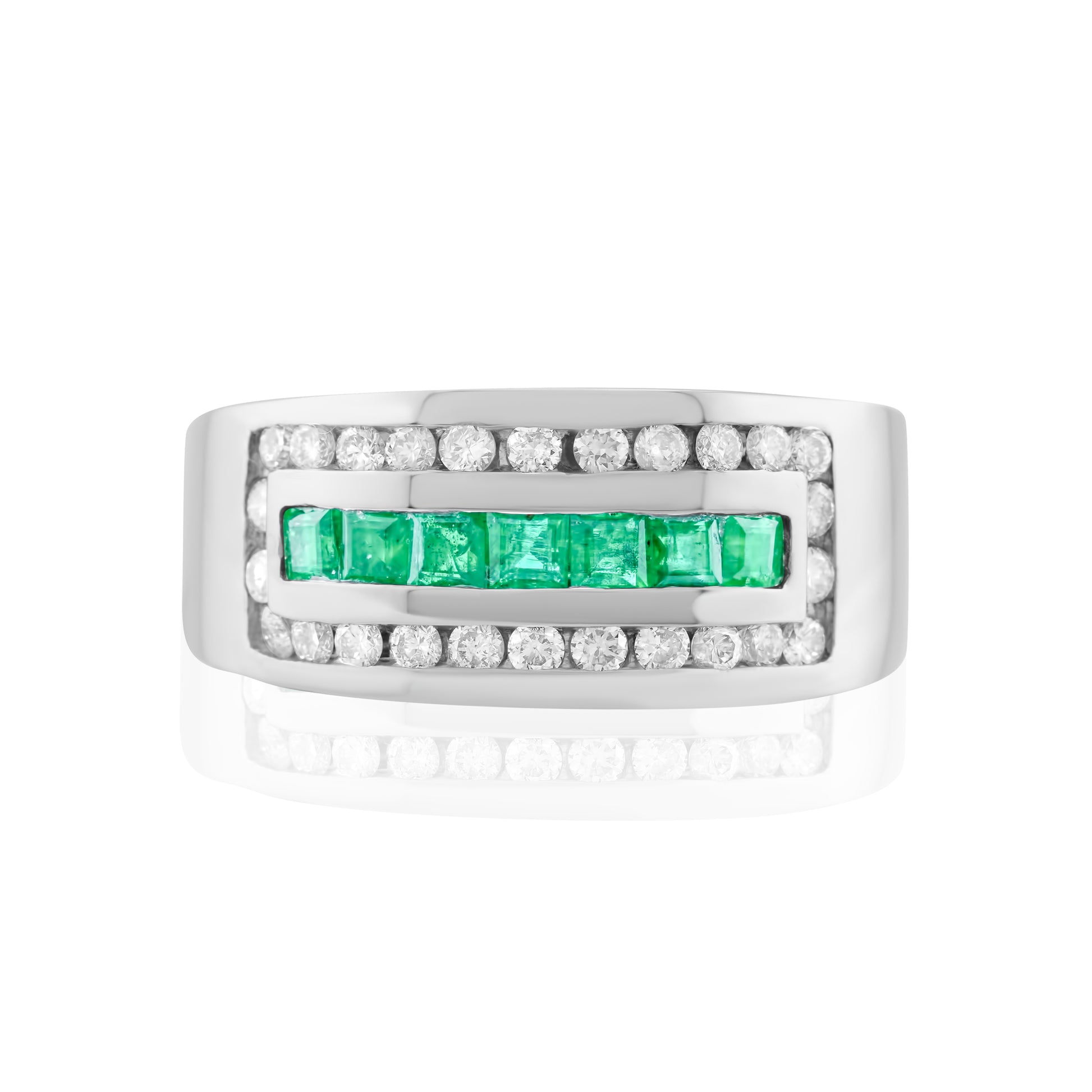 Celebrated for centuries as a stone of power, the Colombian emerald commands attention in this men’s band. Surrounded by brilliant diamonds, it becomes a timeless emblem of strength and prestige.