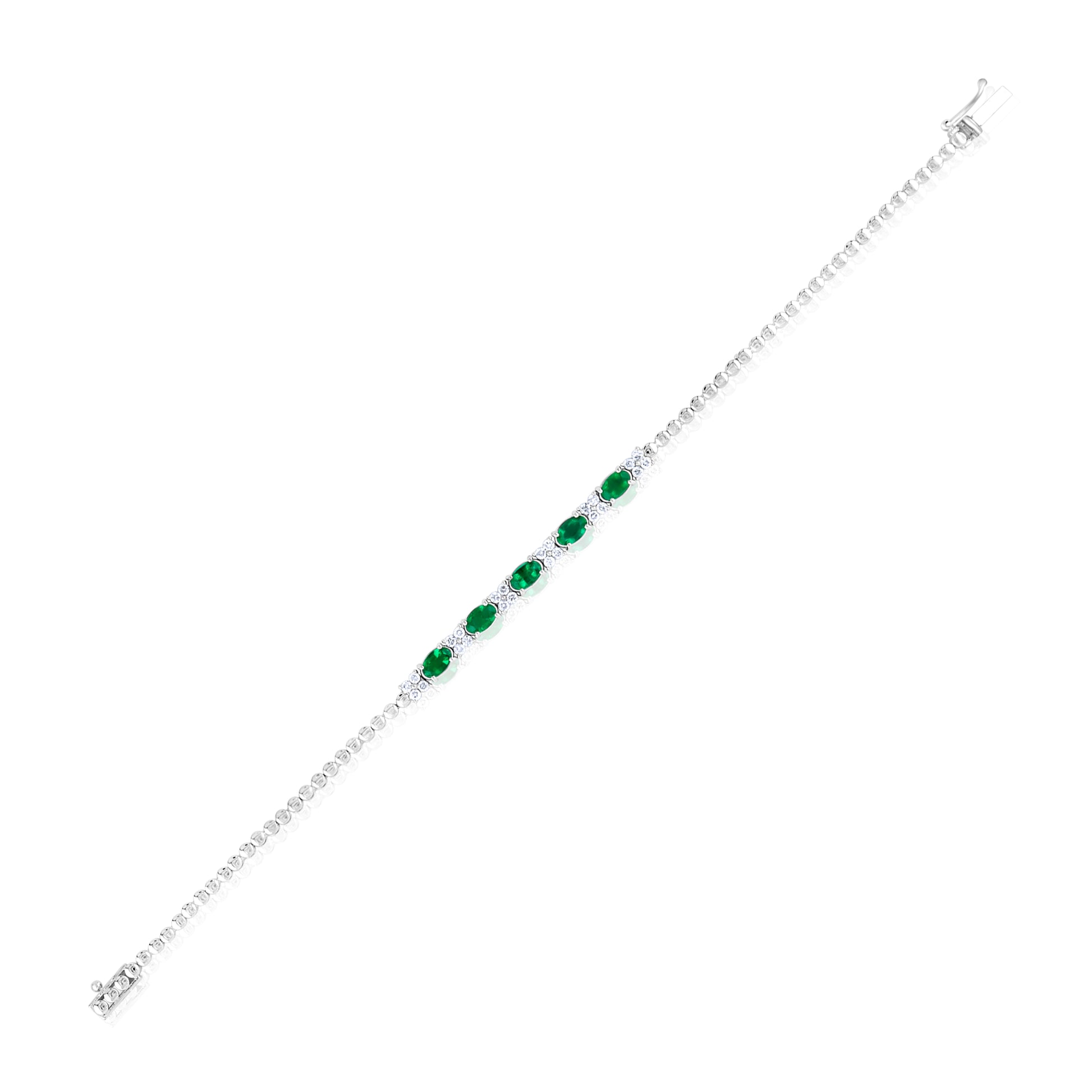 14K White Gold Diamond & Emerald Tennis Bracelet ~ 2 Ct