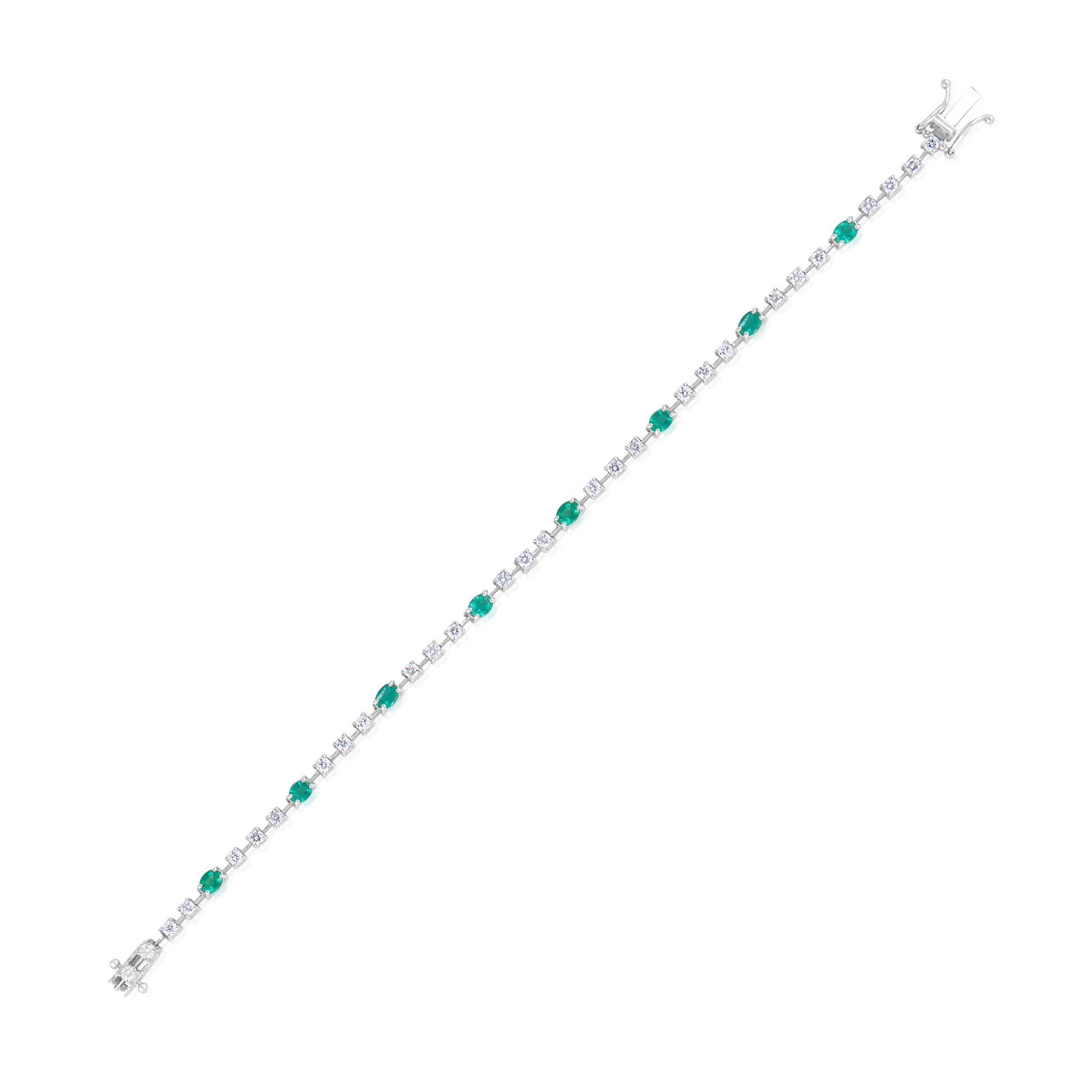 14K White Gold Diamond & Emerald Tennis Bracelet ~ 2 ½ Ct