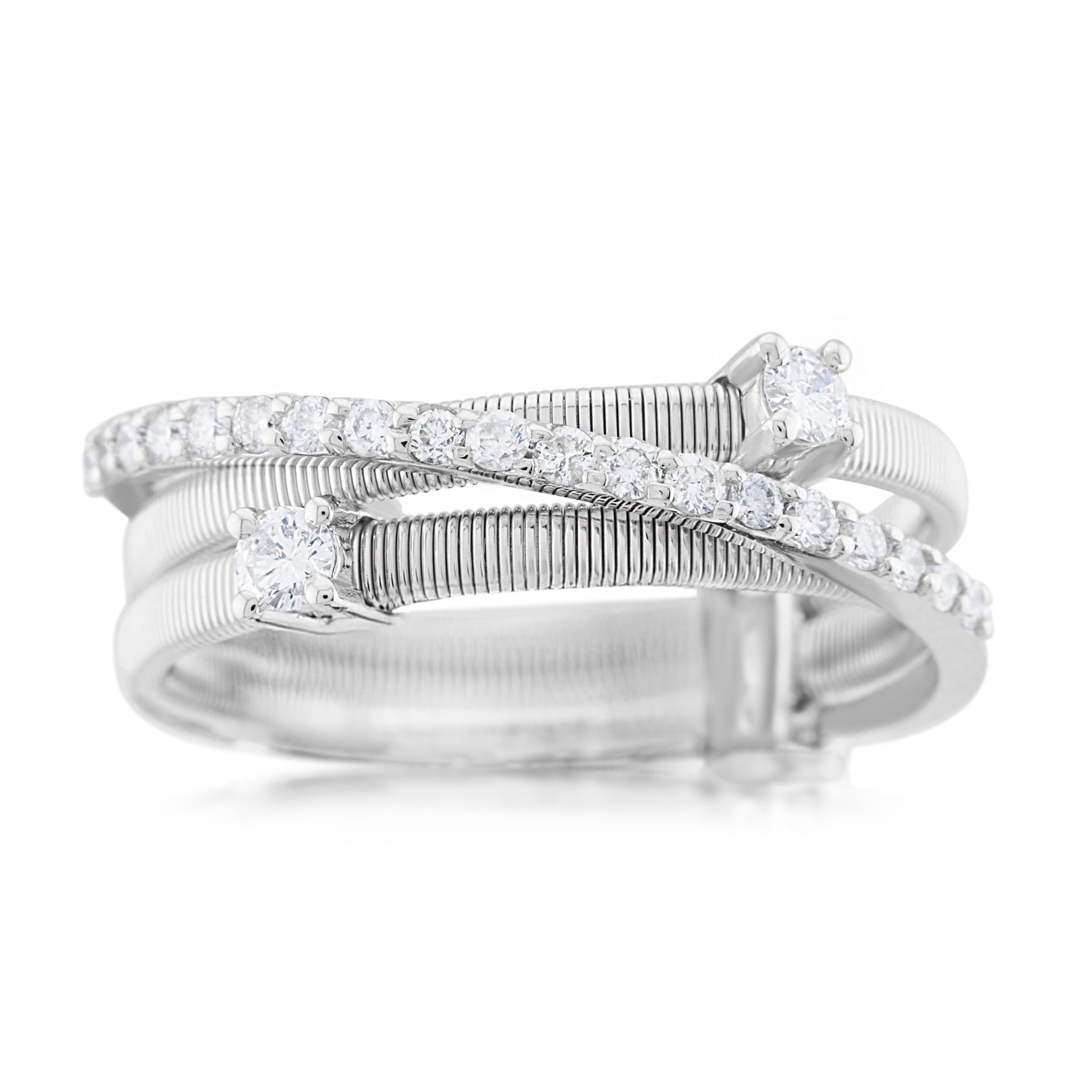 Modern and sculptural, this ring blends fluid movement with crisp brilliance for a look that’s bold yet refined. Its coiled silhouette and diamond accents create a striking piece that’s effortlessly fashion-forward.