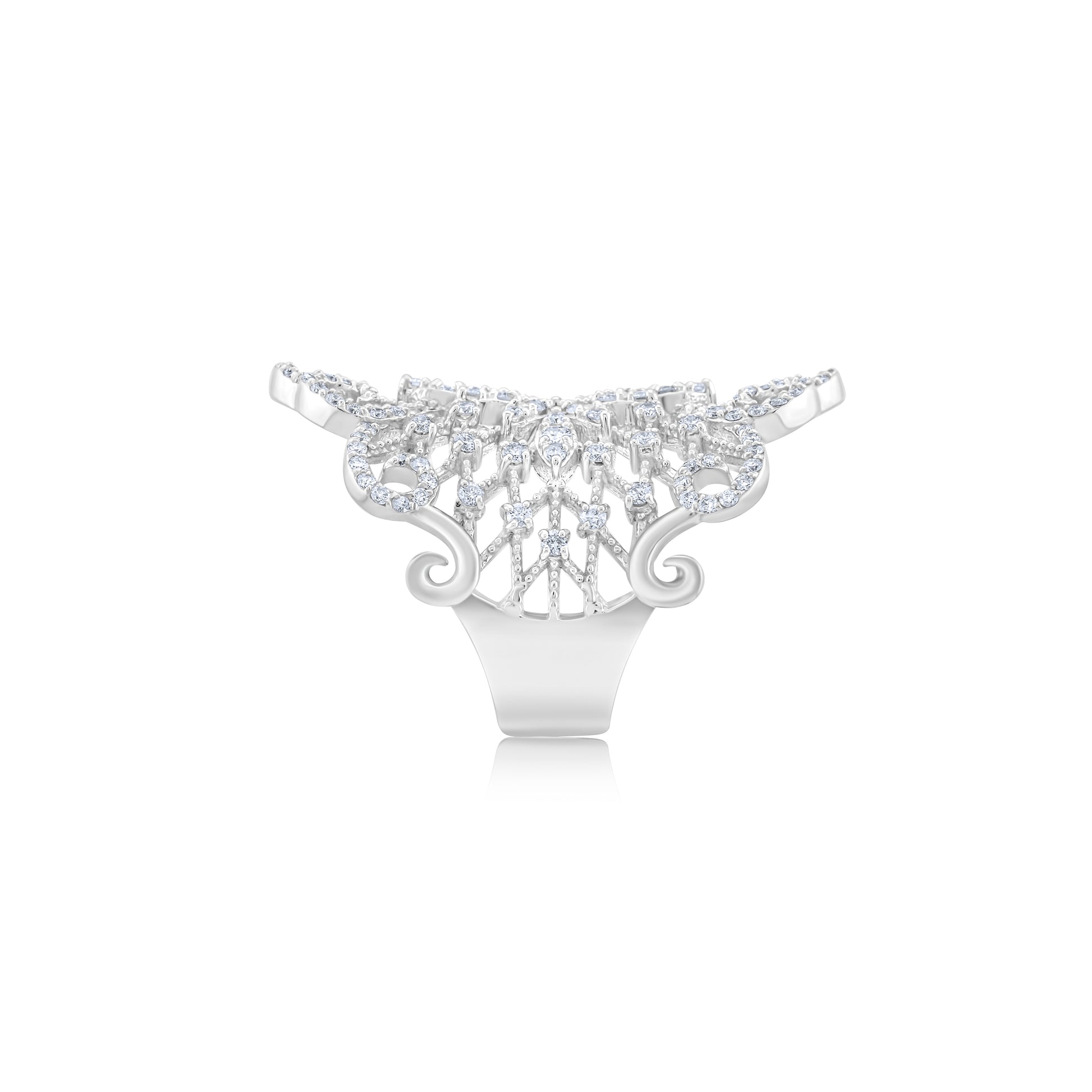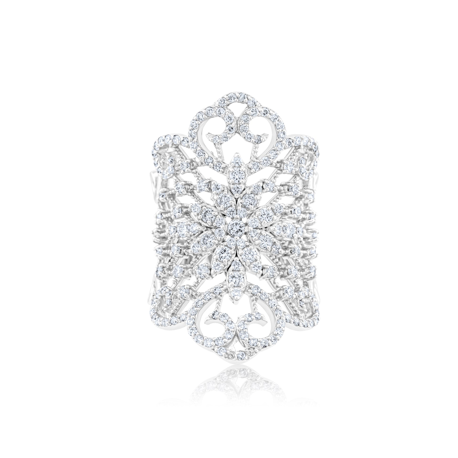 A vision of radiance and refinement, this ornate diamond ring blossoms with intricate artistry and luminous brilliance. Inspired by timeless elegance, it captures the essence of sophistication—where every curve and sparkle tells a story of beauty and grace.