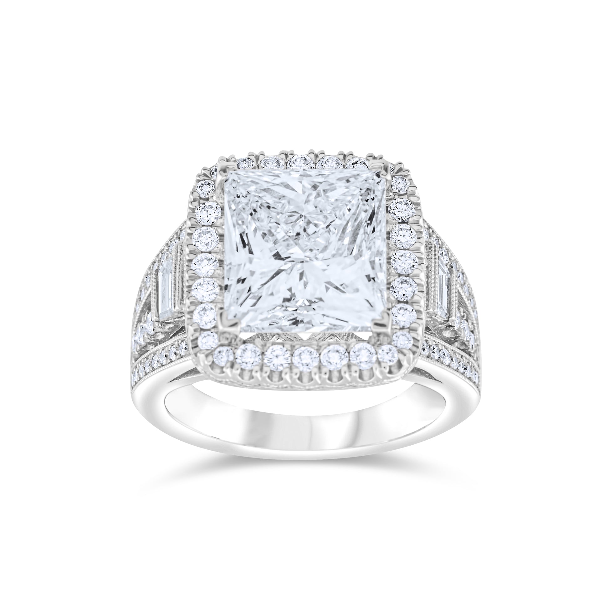 14K White Gold Diamond Halo Princess Cut Statement Ring ~ 7.50 Ct