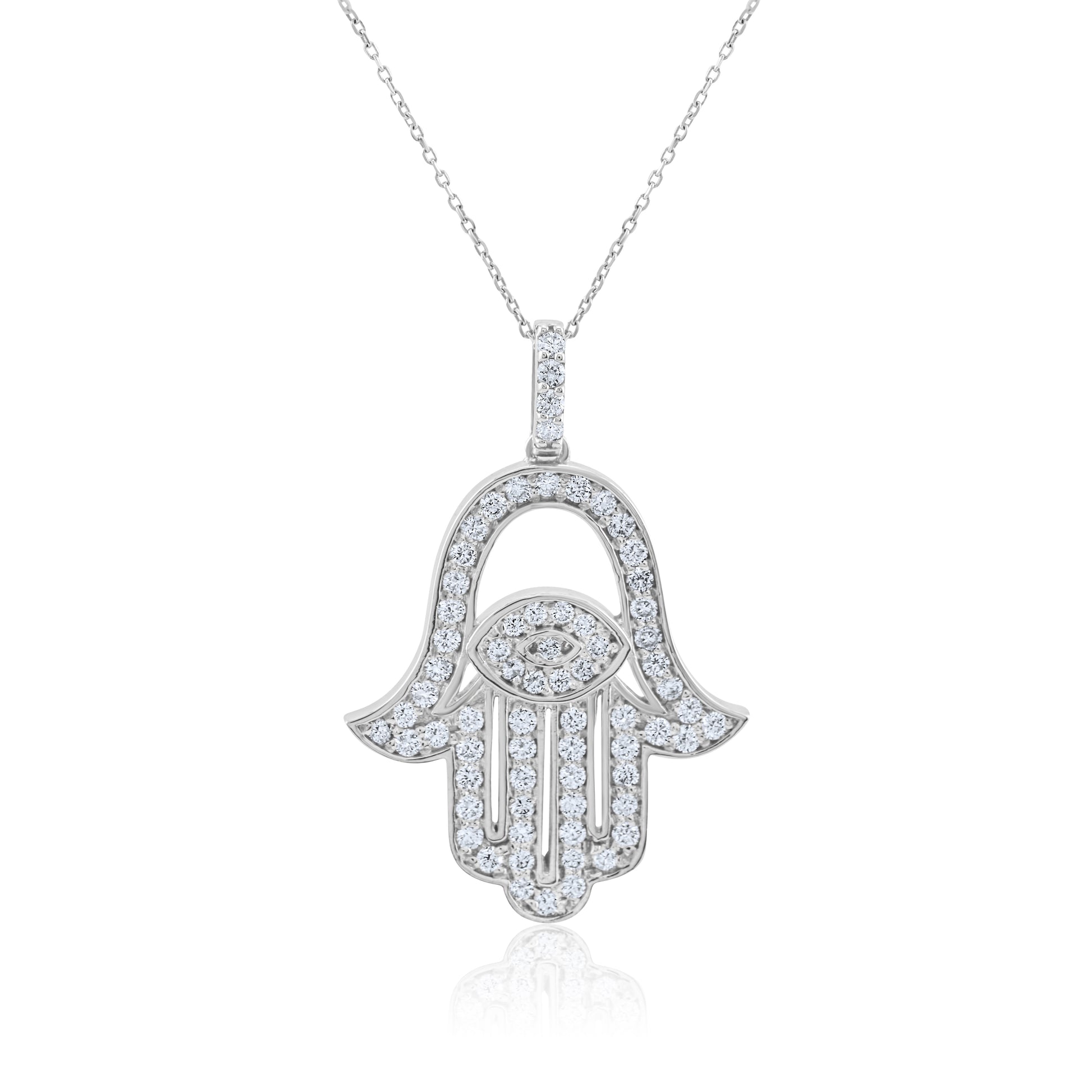 14K White Gold Diamond Hamsa Pendant ~ 1 Ct