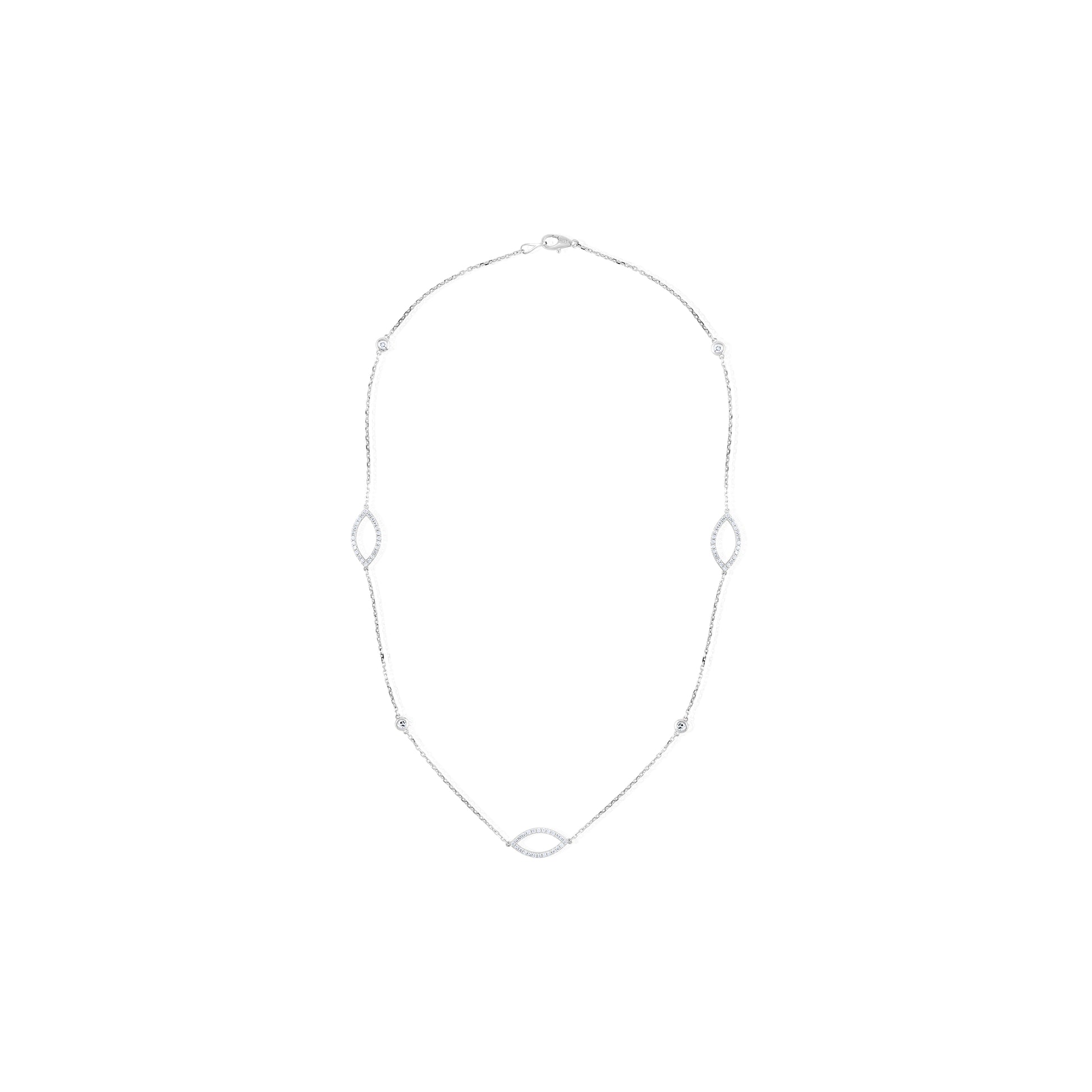 14K White Gold Diamond Marquise Link Station Necklace ~ ¾ Ct