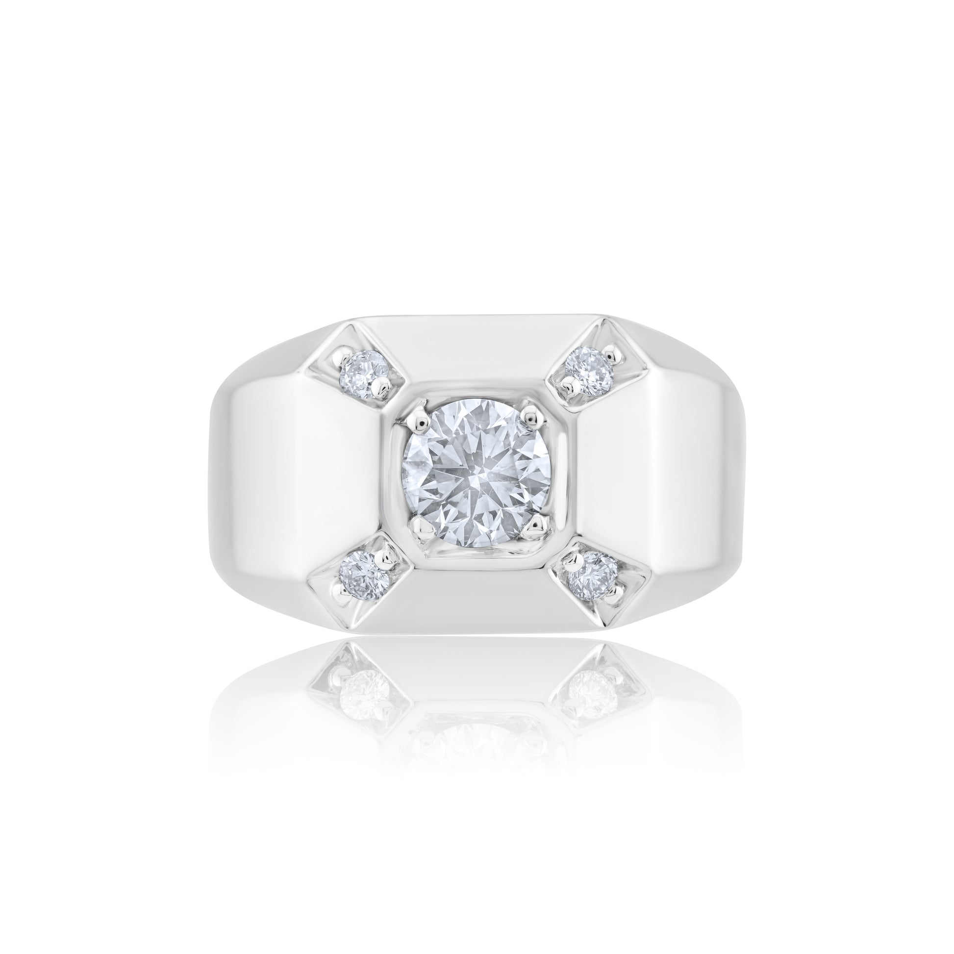 Commanding in presence, this men’s ring features a clarity-enhanced center diamond framed by bold architectural lines. A statement of power and refinement, it embodies masculine confidence with enduring sophistication.