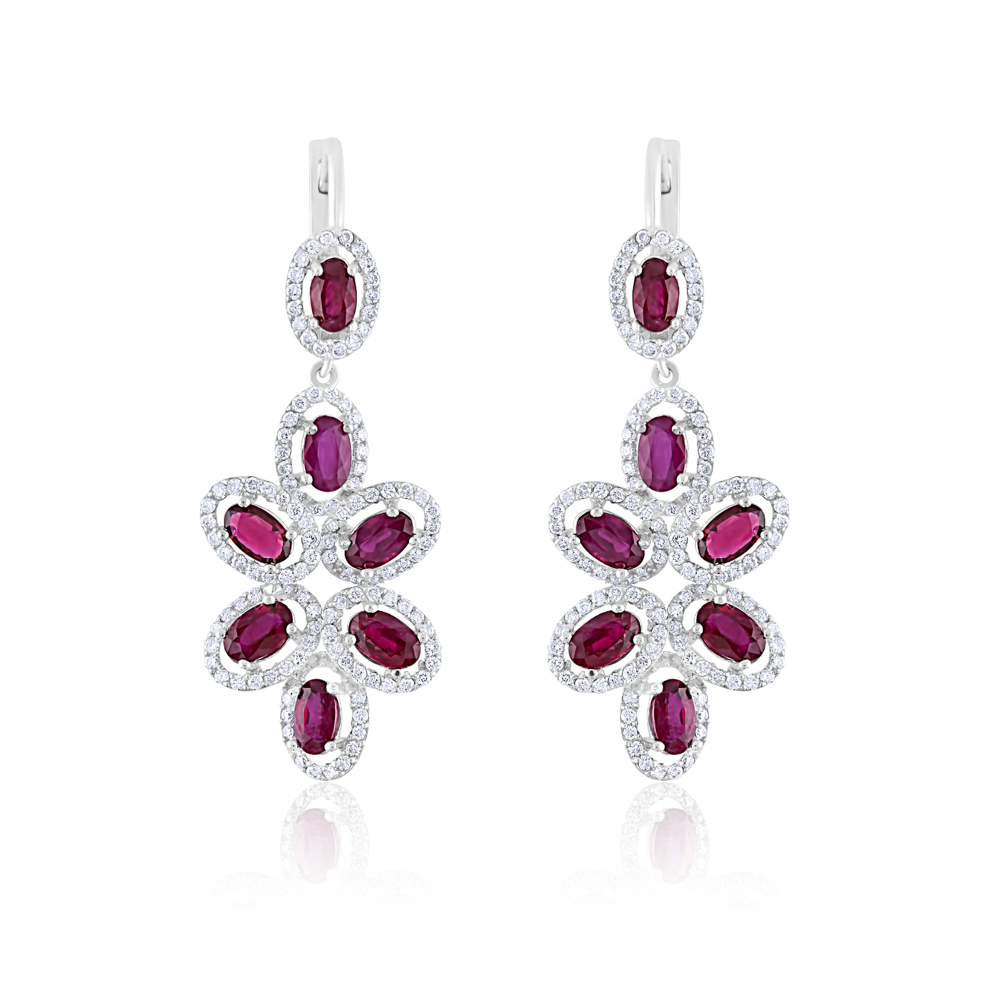 A cascade of vivid rubies embraced by halos of luminous diamonds, blooming in perfect harmony. Romantic and radiant, they embody timeless elegance with a touch of royal allure.