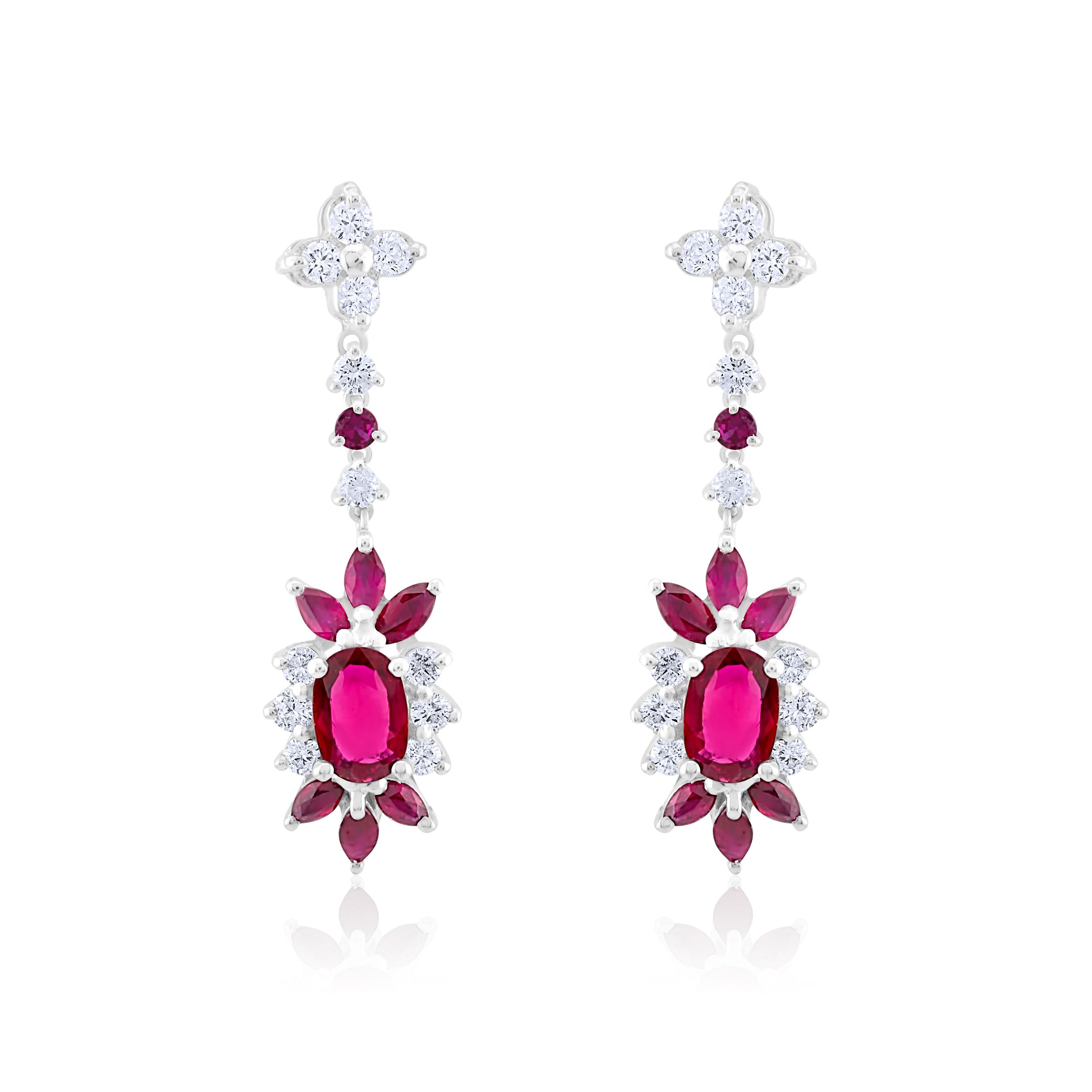 A symphony of passion and brilliance, where fiery rubies meet the purity of diamonds. These floral-inspired drops bloom with timeless romance and regal charm.