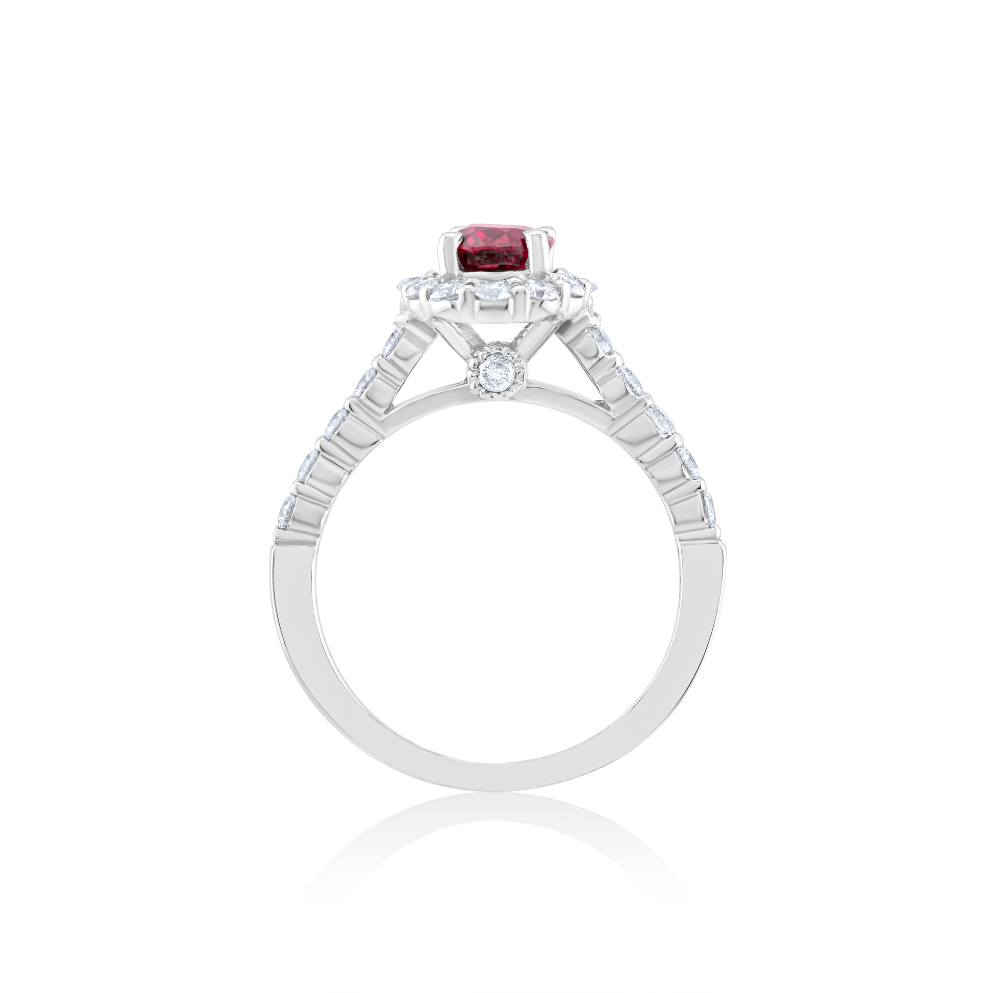 14K White Gold Diamond & Ruby Halo Right Hand Ring ~ 2 Ct