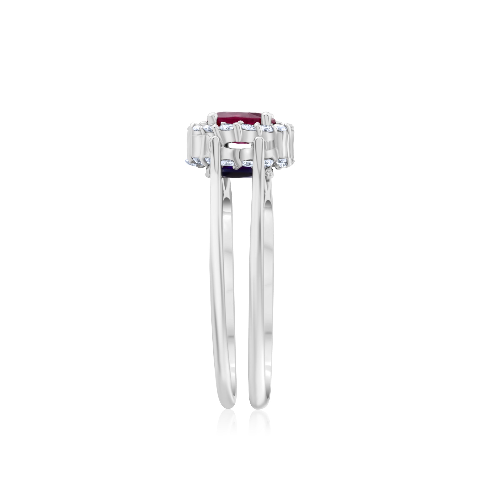 14K White Gold Diamond, Ruby & Sapphire Reversible Ring 1 2/3 Ct