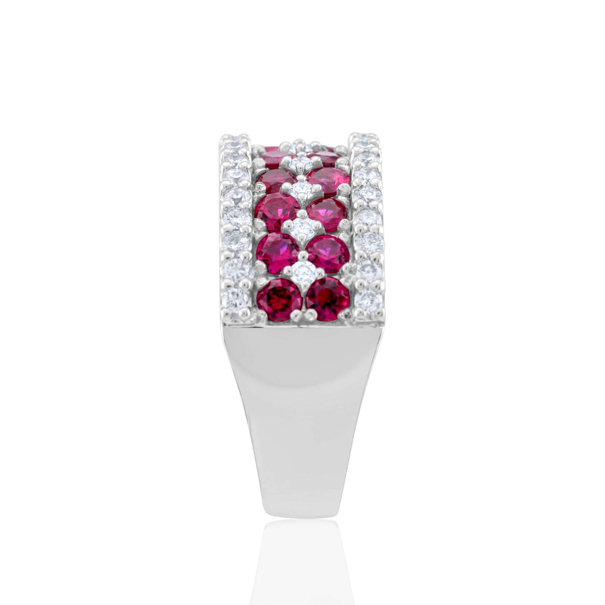 14K White Gold Diamond & Ruby Wide Band 2 ½ Ct