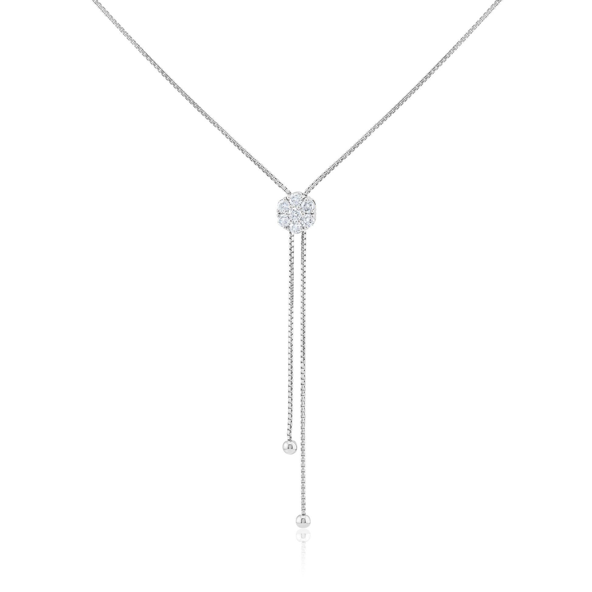 14K White Gold Diamond Slider Cluster Necklace 1.09 Ct