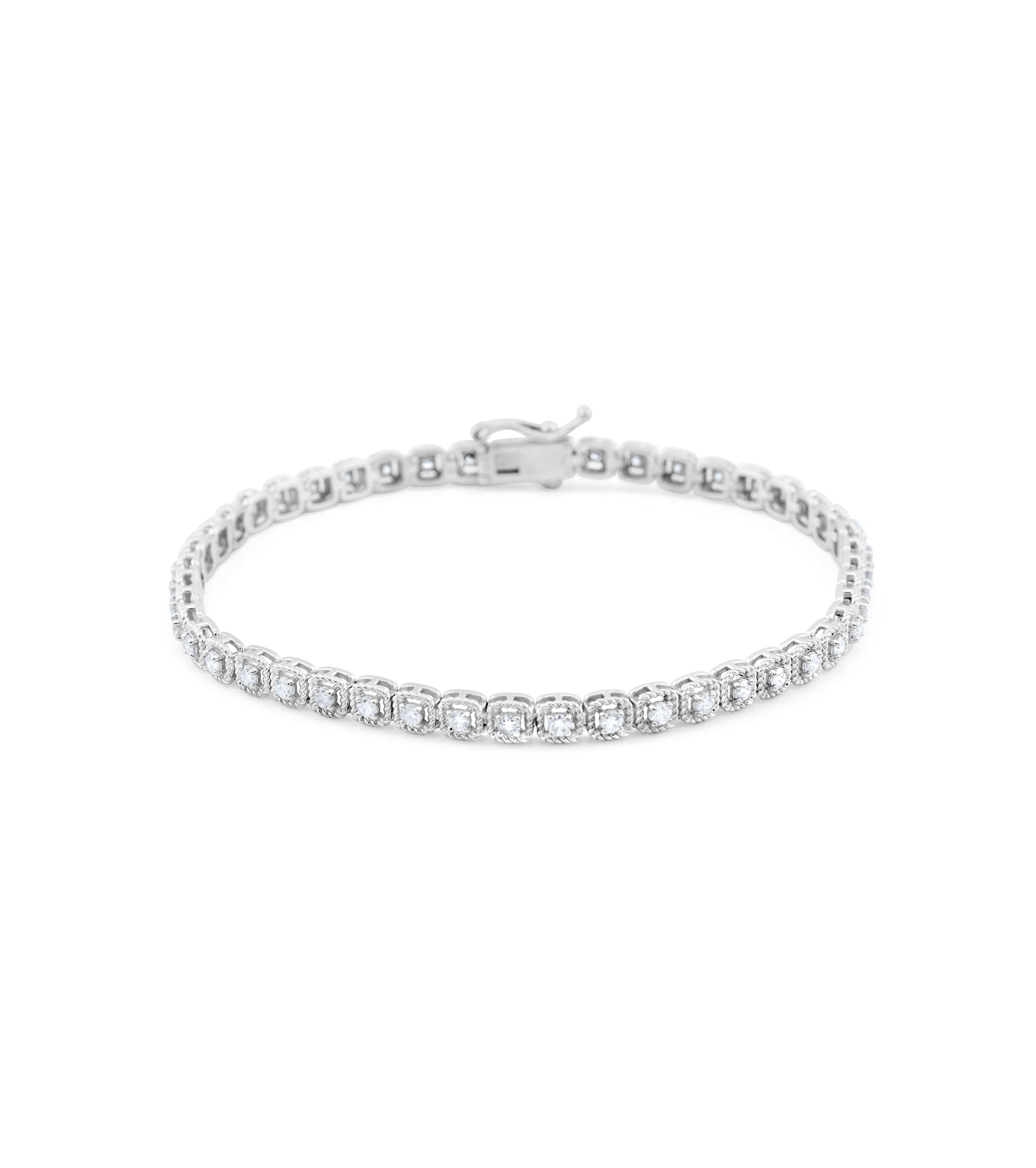 This antique-style tennis bracelet brings timeless beauty to the wrist with over a carat of brilliant diamonds set in a classic prong design. Finished with an extra safety clasp, it’s a refined piece that blends vintage elegance with everyday wearability.
