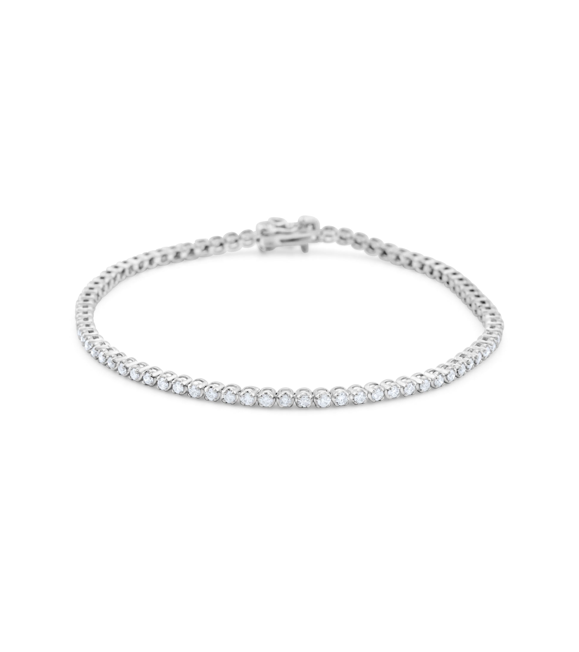 Elegant and versatile, this tennis bracelet features 1.50 carats of sparkling round diamonds set in a classic prong design. With a secure double safety clasp, it’s the perfect blend of everyday luxury and timeless sophistication.