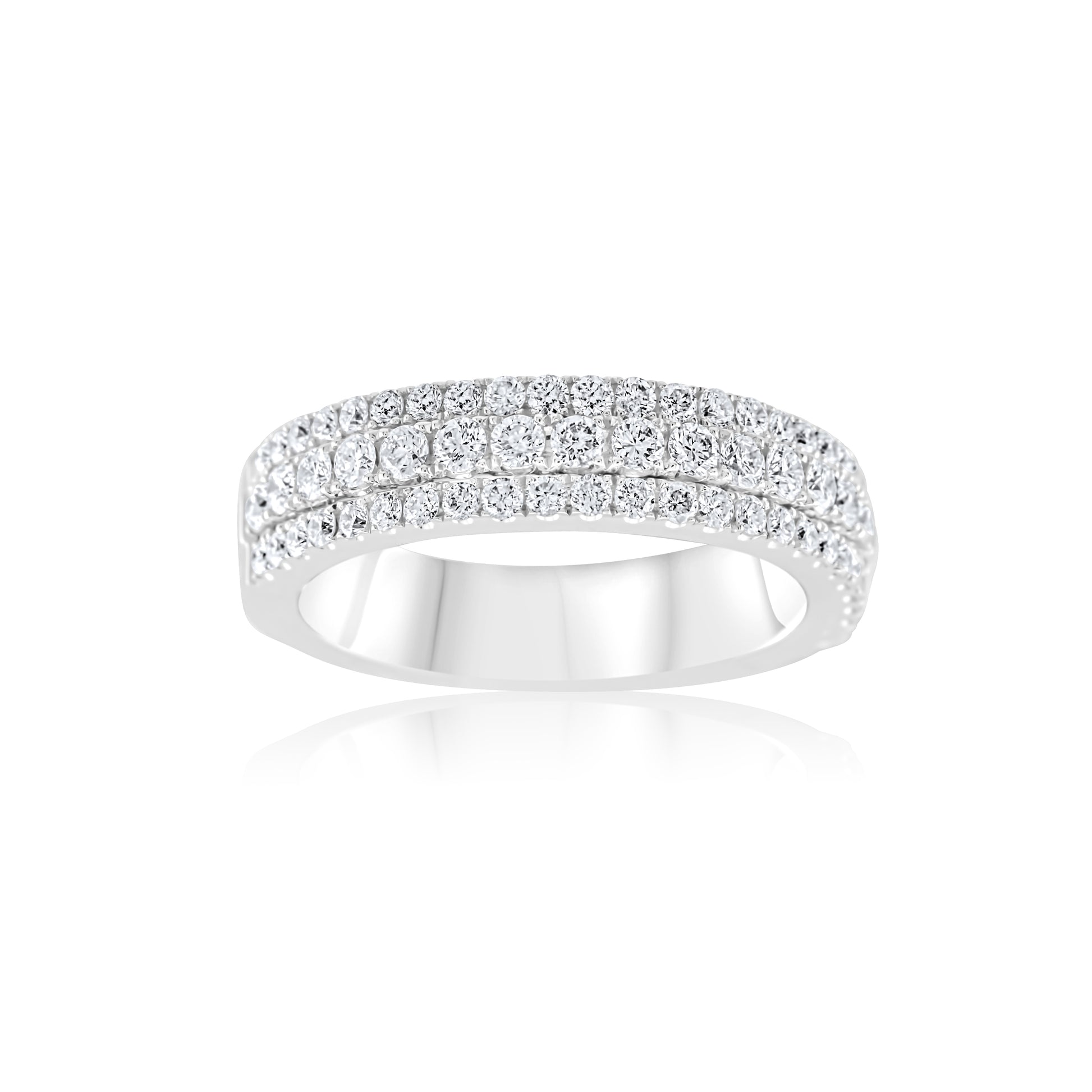 14K White Gold Diamond Three-Row Band ~ 1 Ct