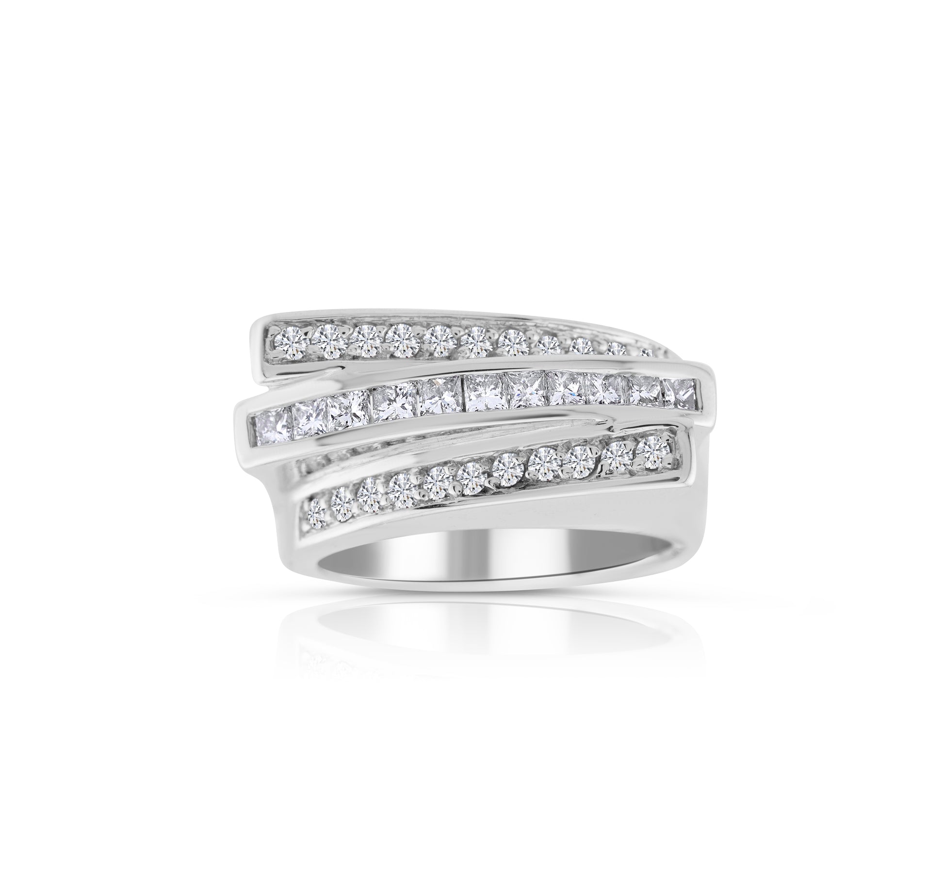 14K White Gold Diamond Three-Row Ring ~ 1 Ct