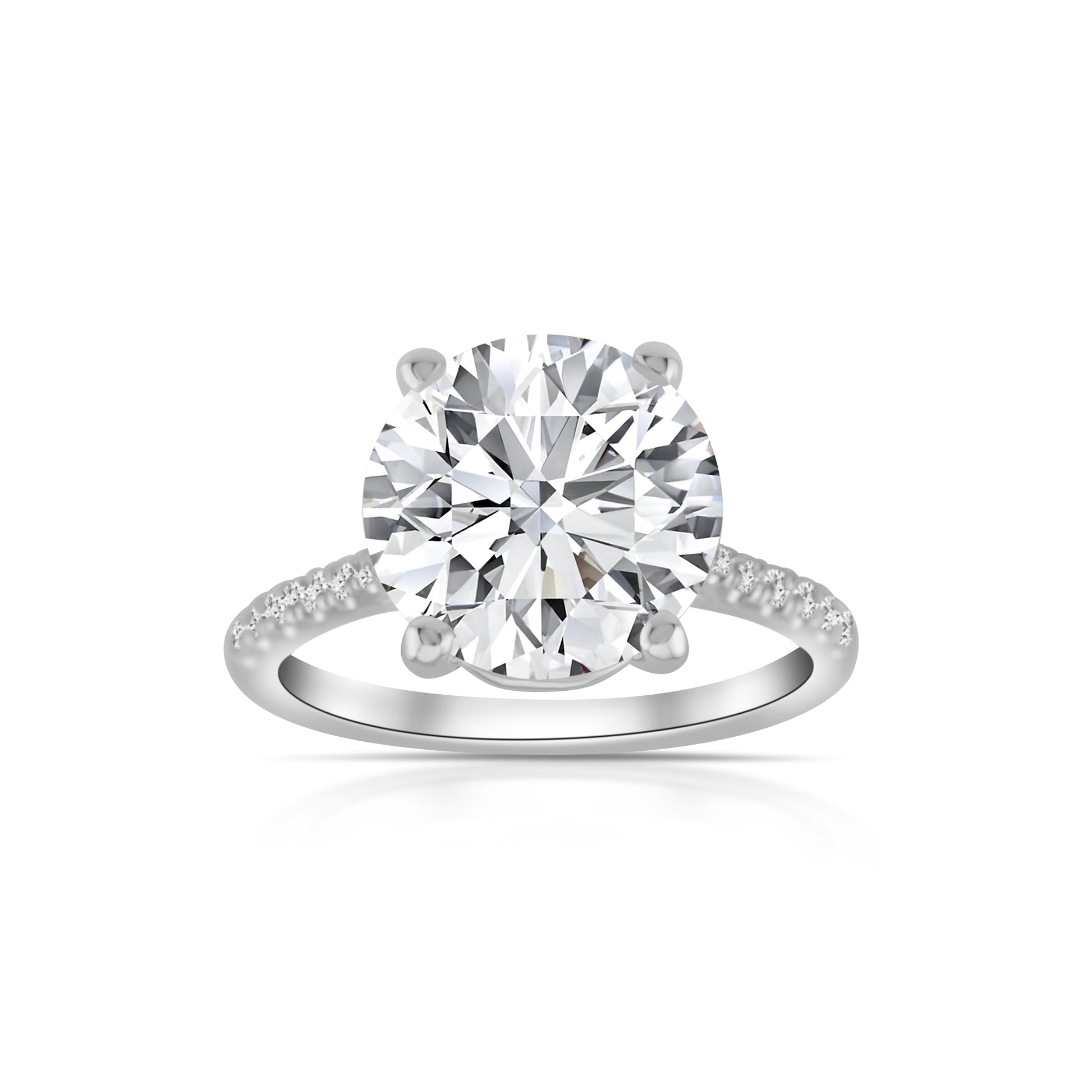 A luminous round lab diamond rises in a whisper-thin pavé embrace, capturing light with breathtaking purity. A timeless promise of devotion, crafted to shine with the brilliance of forever.