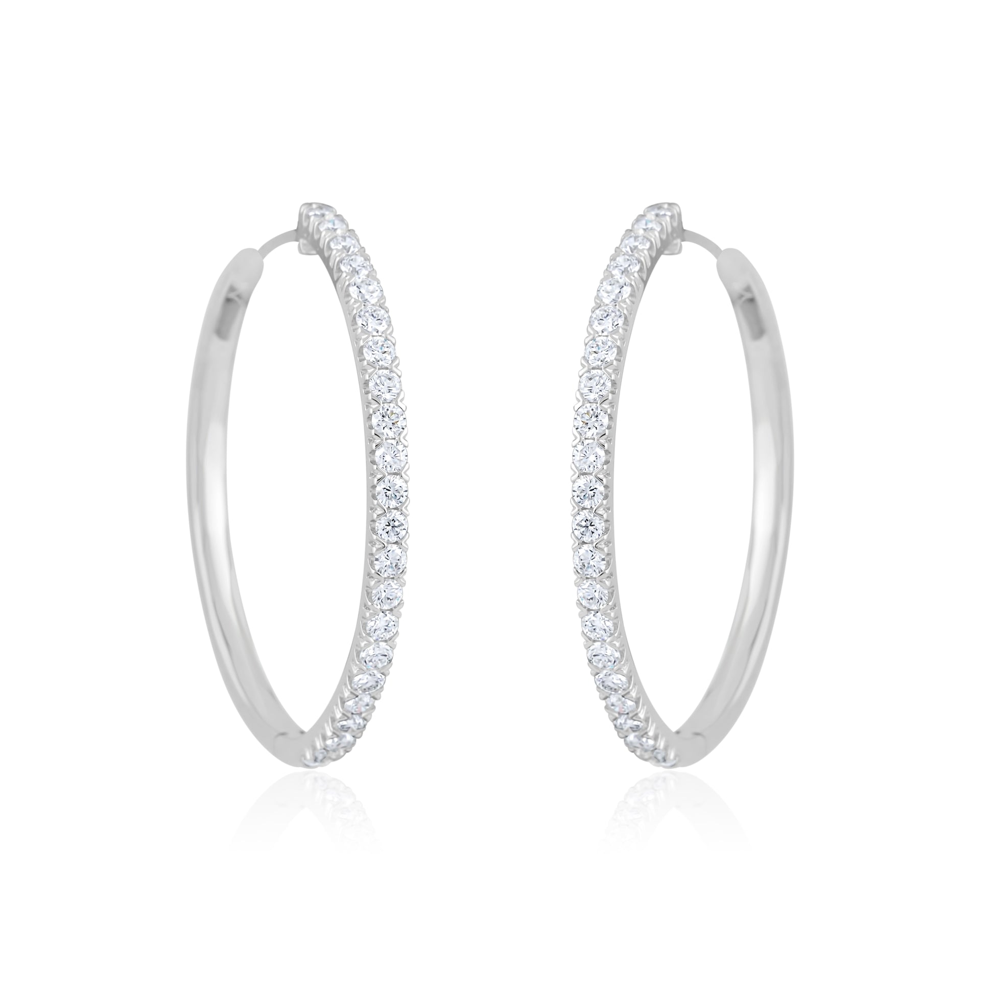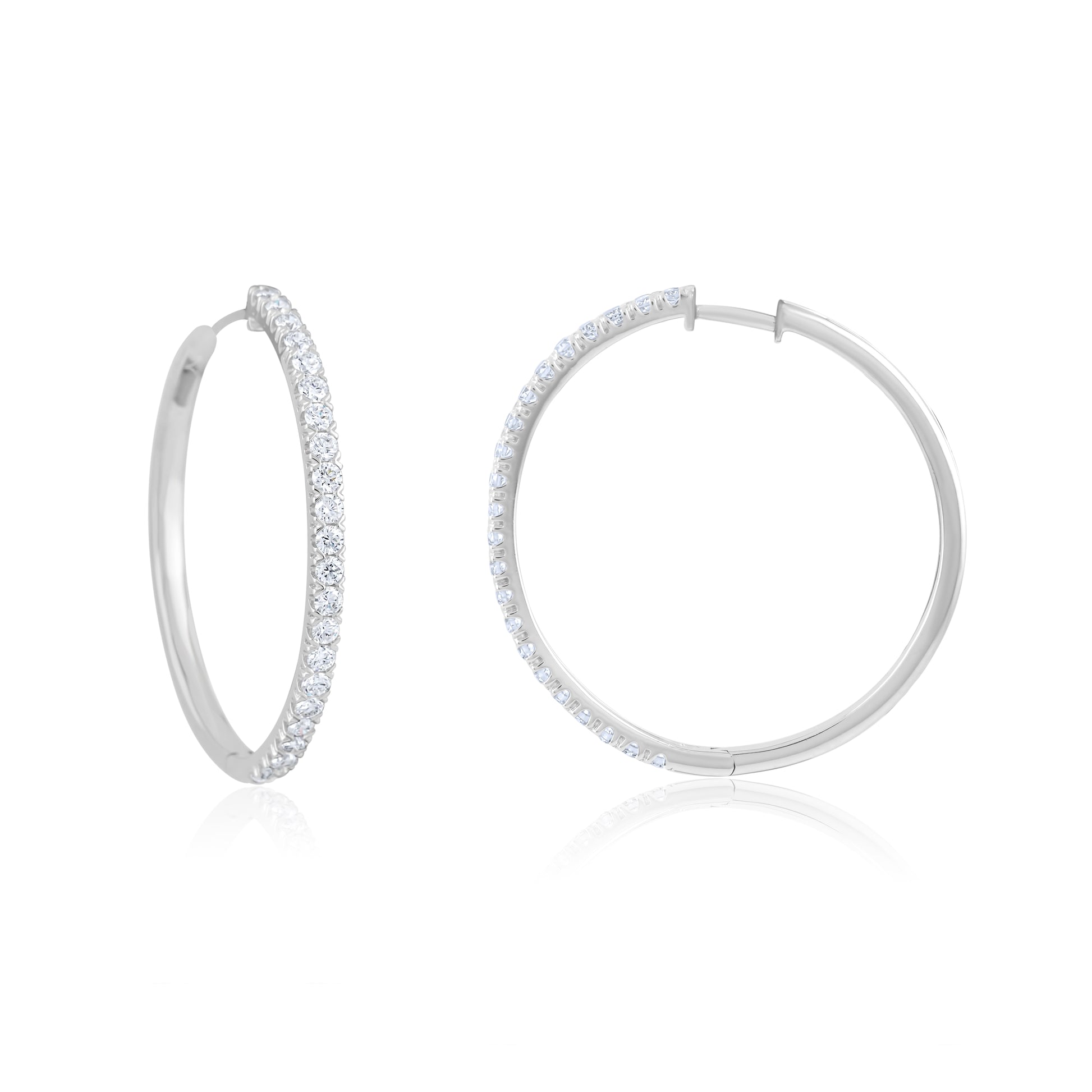 14K White Gold Lab Diamond Hoop Earrings ~ 2 ½ Ct