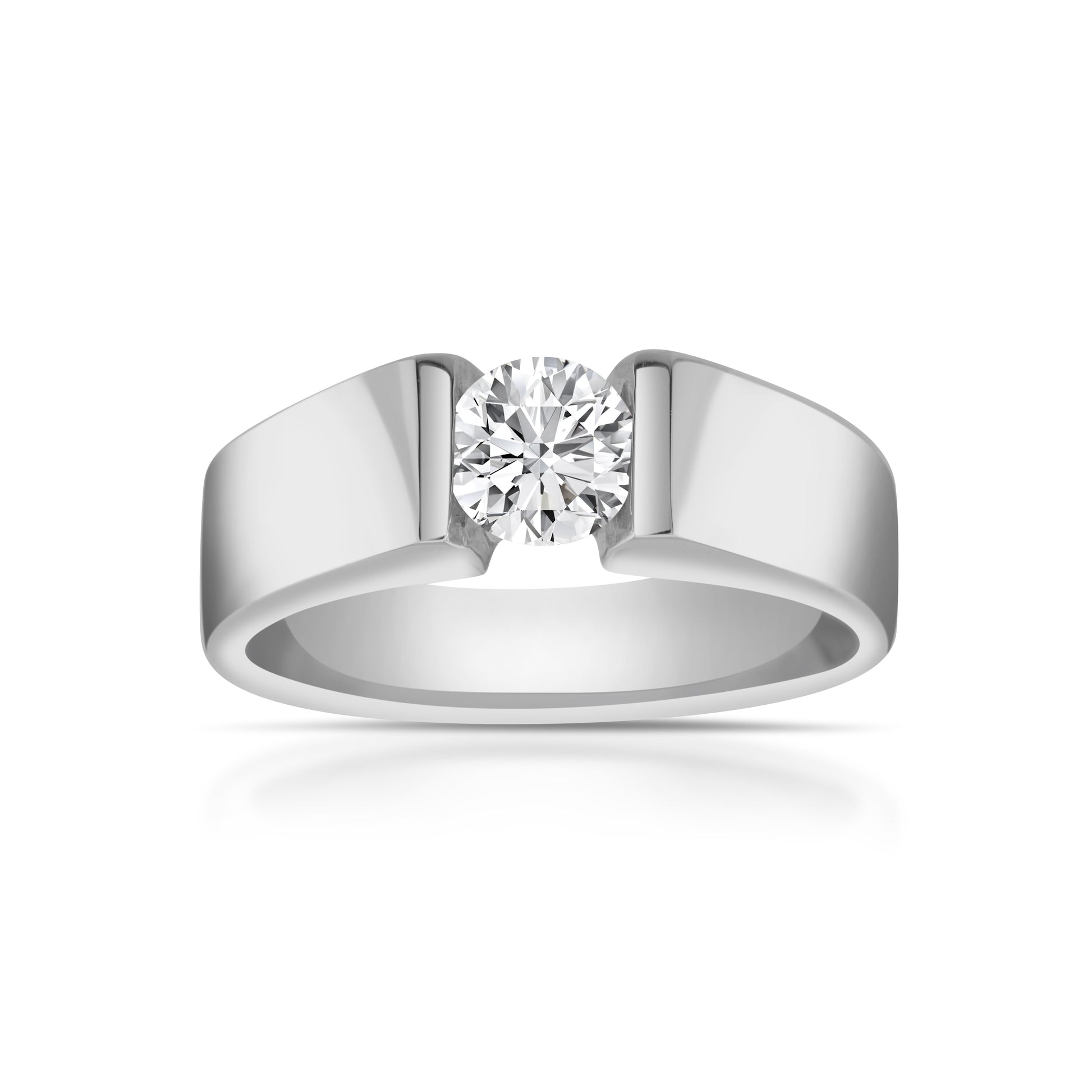 14K White Gold Single Floating Diamond Men’s Ring ~ 1 Ct
