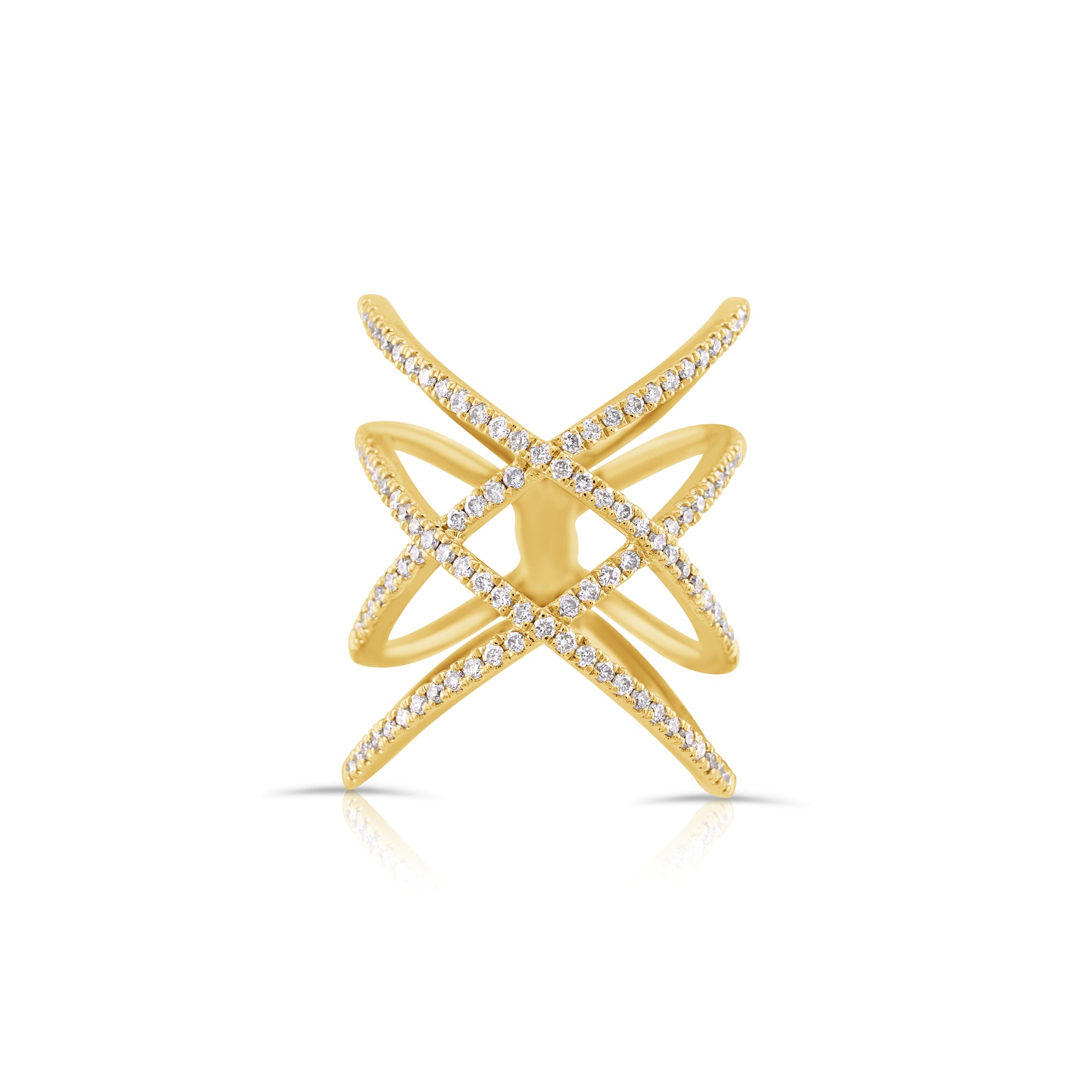 Bold and luminous, this ring design weaves golden lines of light into a striking silhouette of modern elegance. A statement of confidence and artistry, it shines with brilliance meant to captivate every glance.