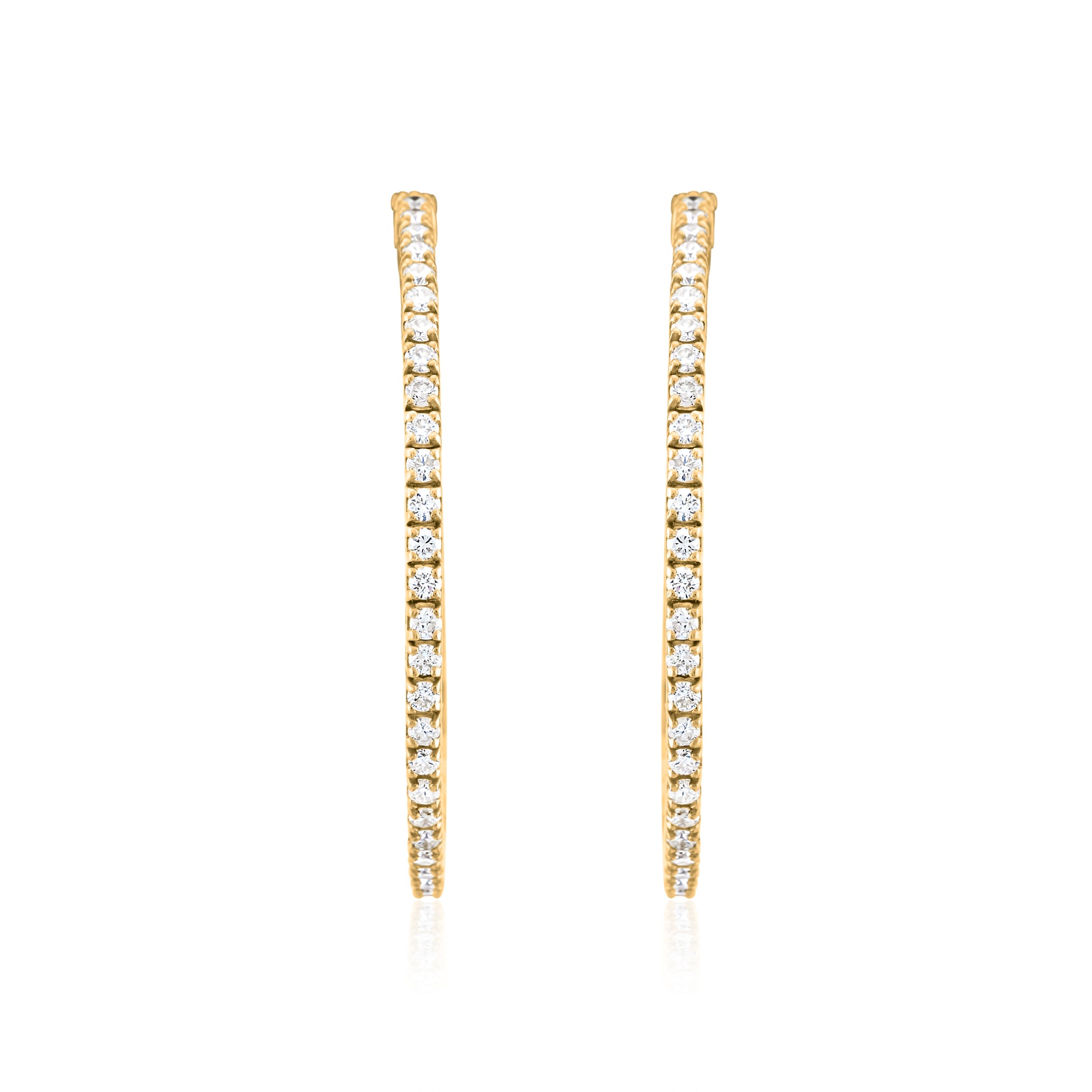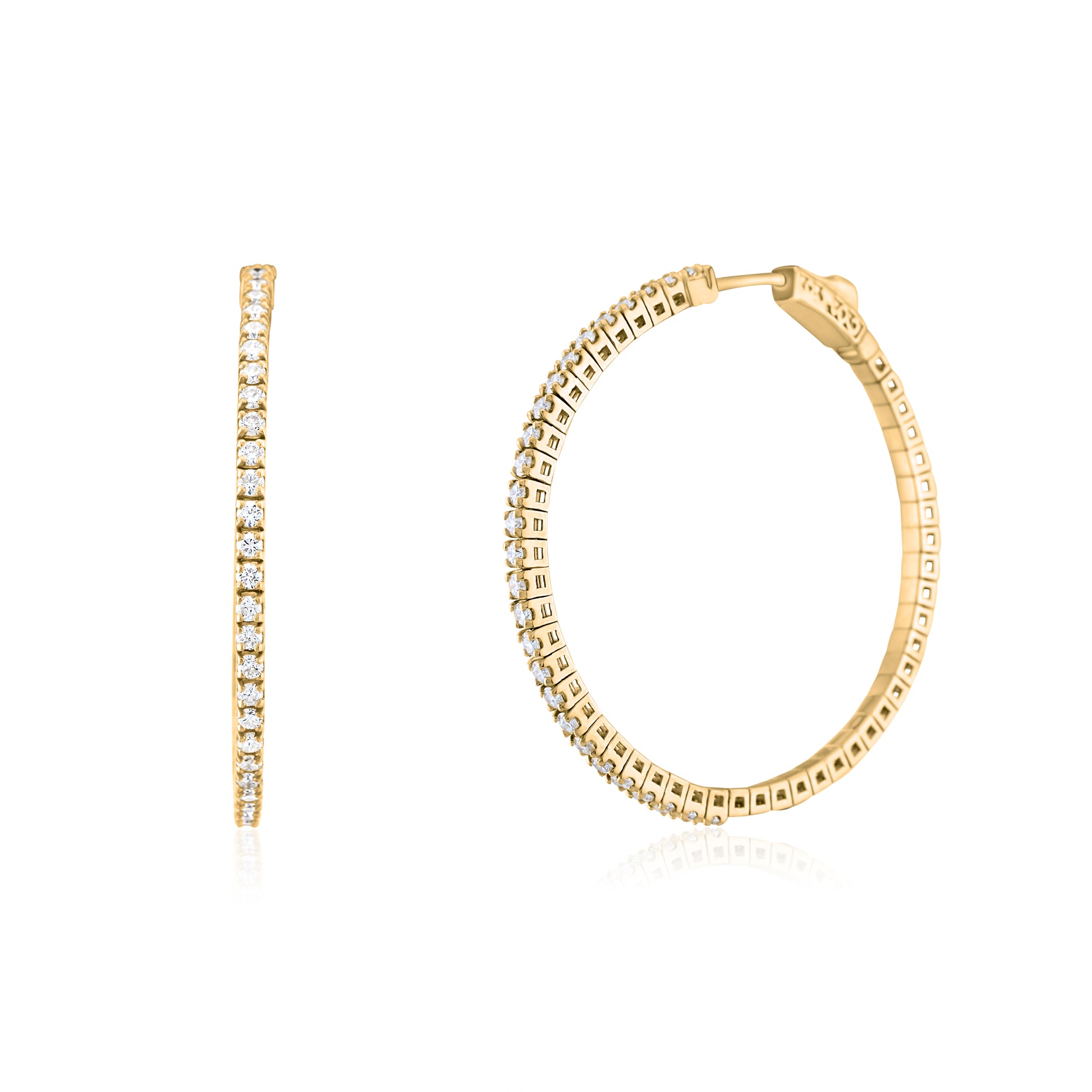 A timeless silhouette reimagined in gold, where each diamond shimmers with endless fire. Graceful and radiant, these hoops embody effortless sophistication for every occasion.