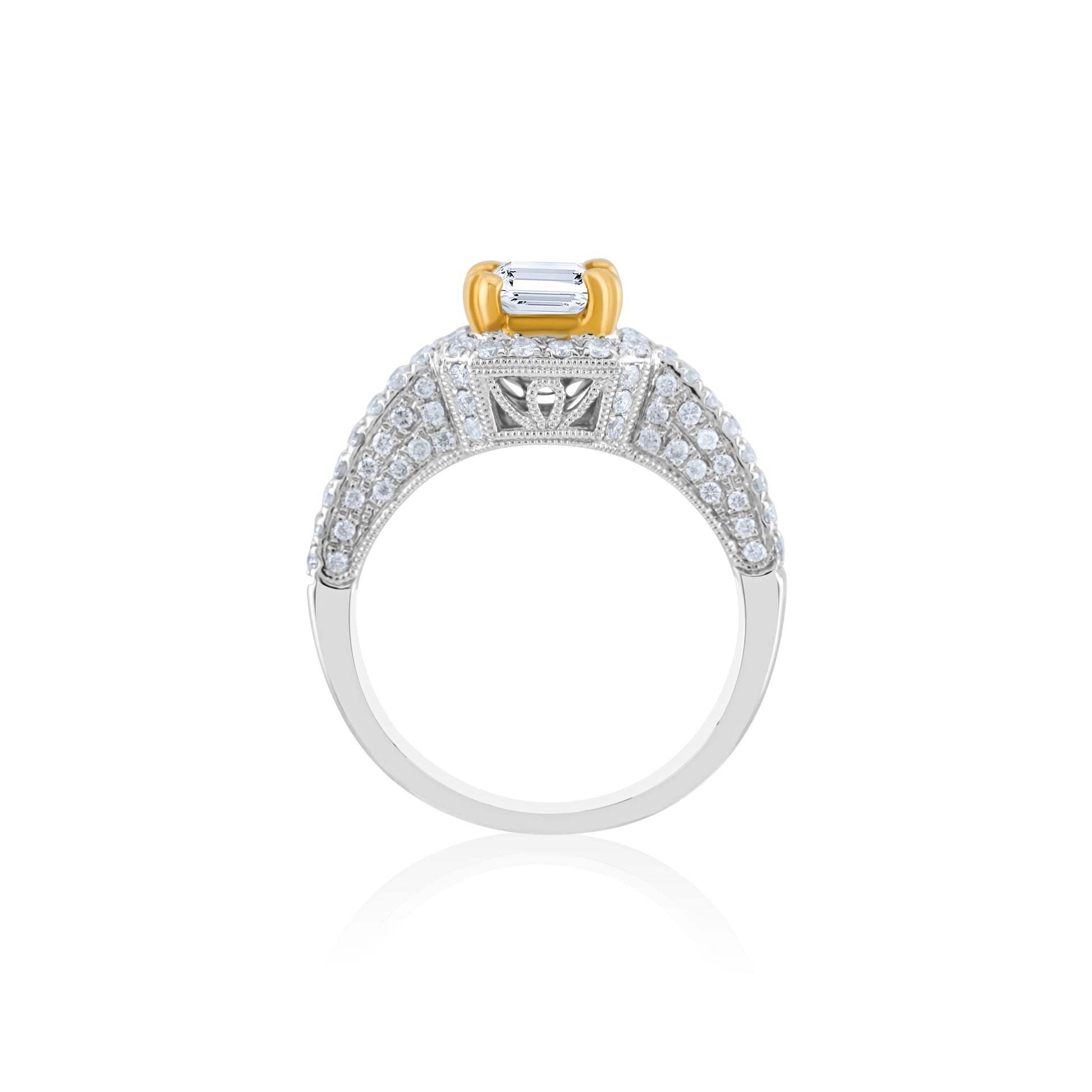 18K Two-Tone Gold Light Yellow Diamond Engagement Ring ~ 1 2/3 Ct