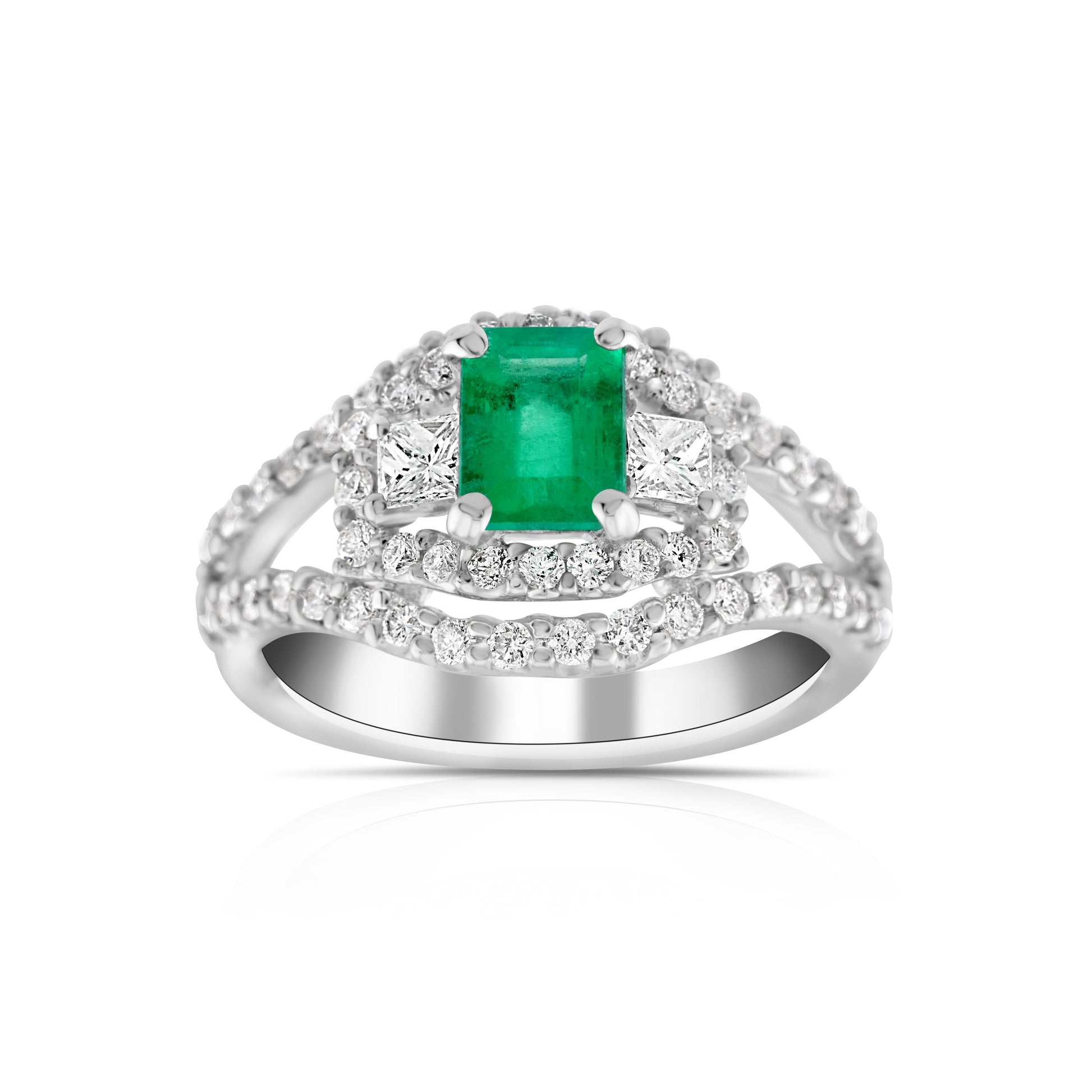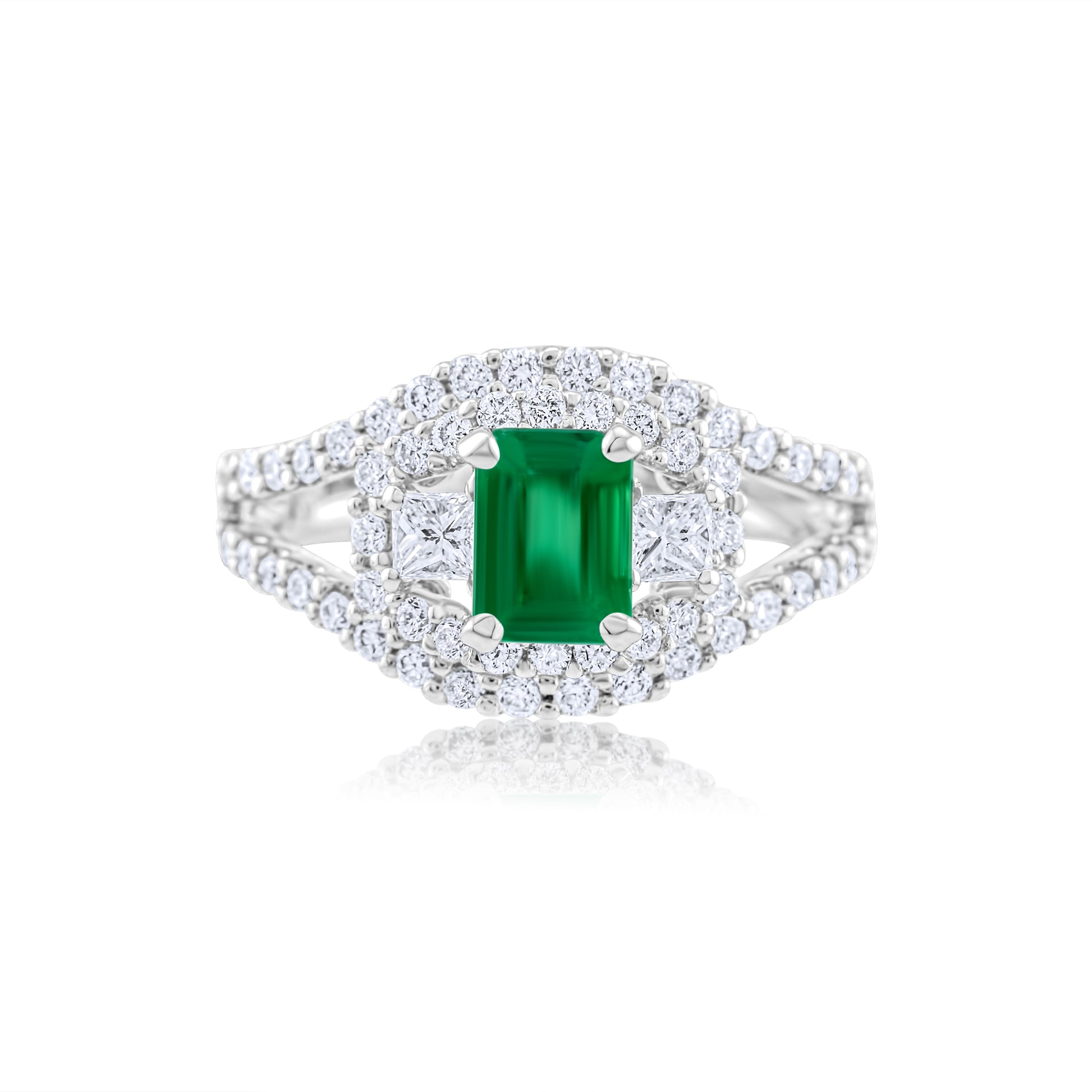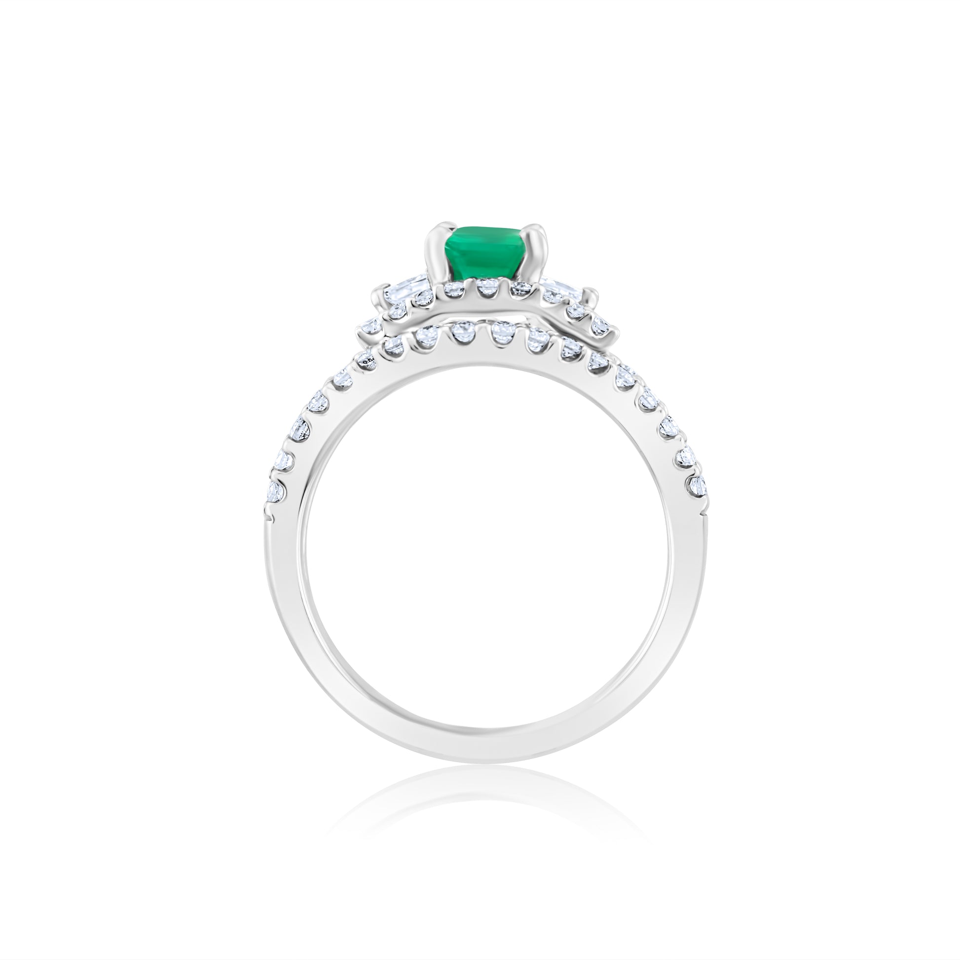 Radiant and regal, this exquisite ring captures the essence of timeless elegance with its vivid emerald embraced by cascades of shimmering diamonds. A celebration of grace and strength, it evokes the allure of eternal love in every luminous detail.