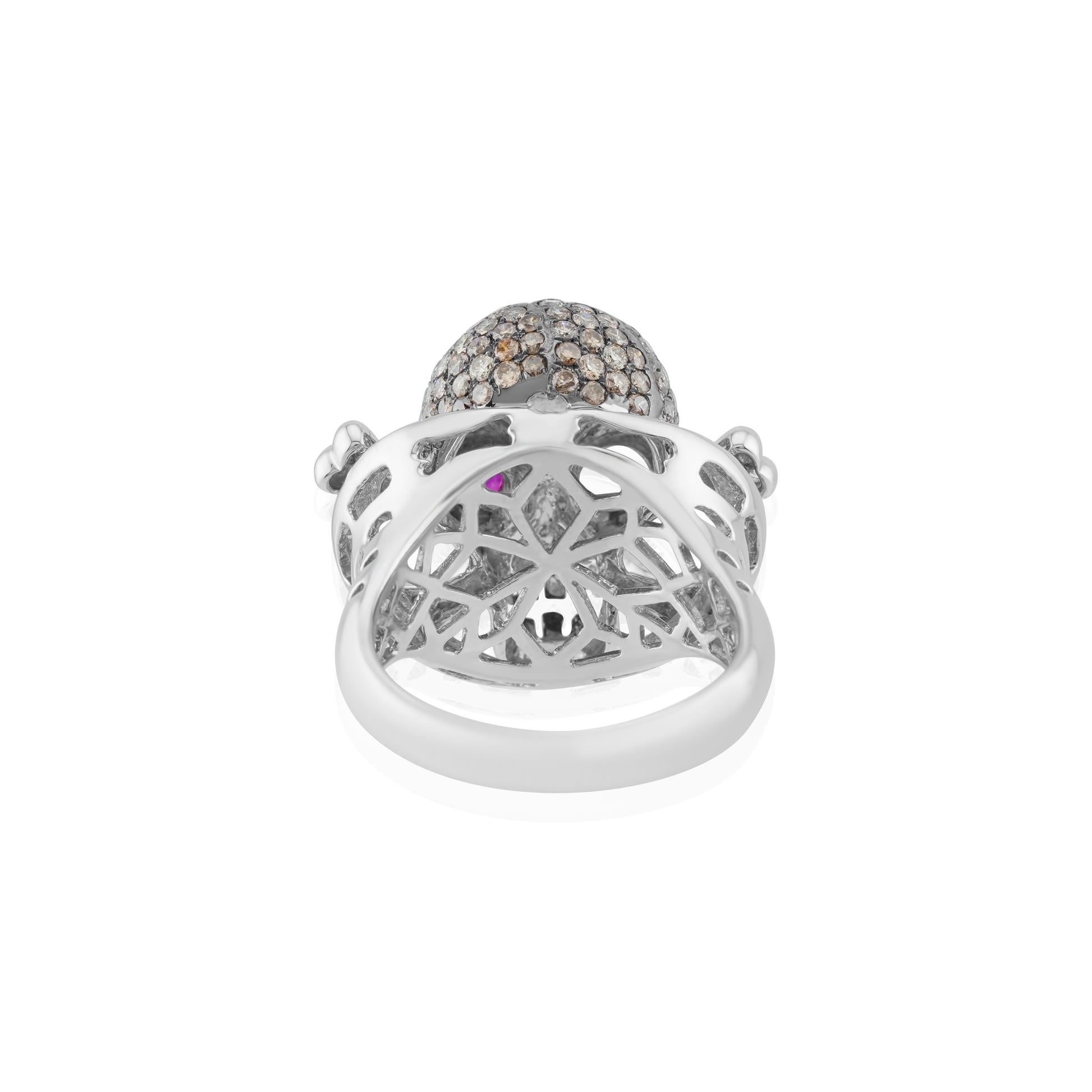 Raw and untamed, this men’s skull ring fuses champagne diamonds with a piercing ruby eye for a look of fearless defiance. Set in 18K white gold, it’s a bold emblem of rebellion and unstoppable energy.