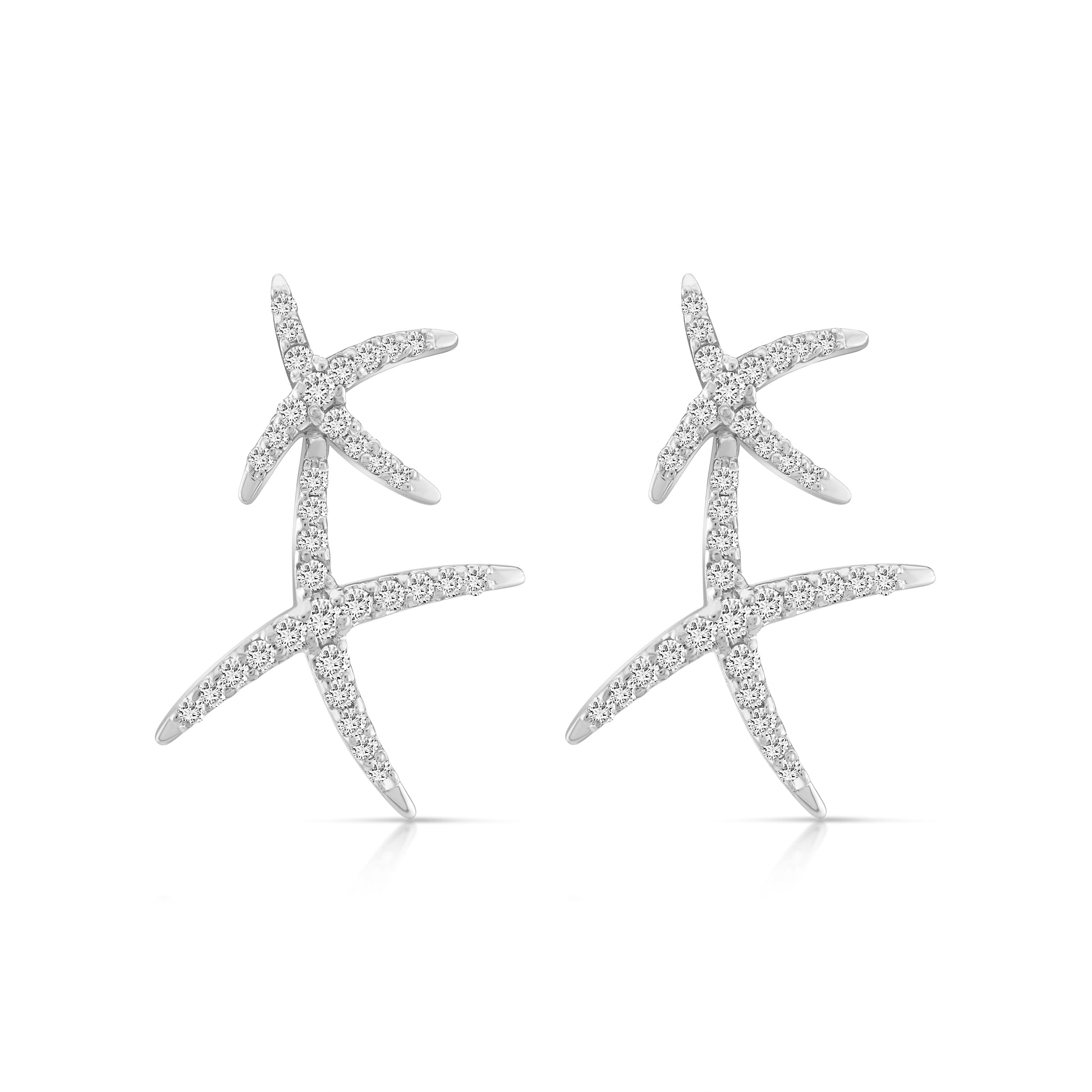 18K White Gold Diamond Starfish Drop Earrings ~ 1 ½ Ct