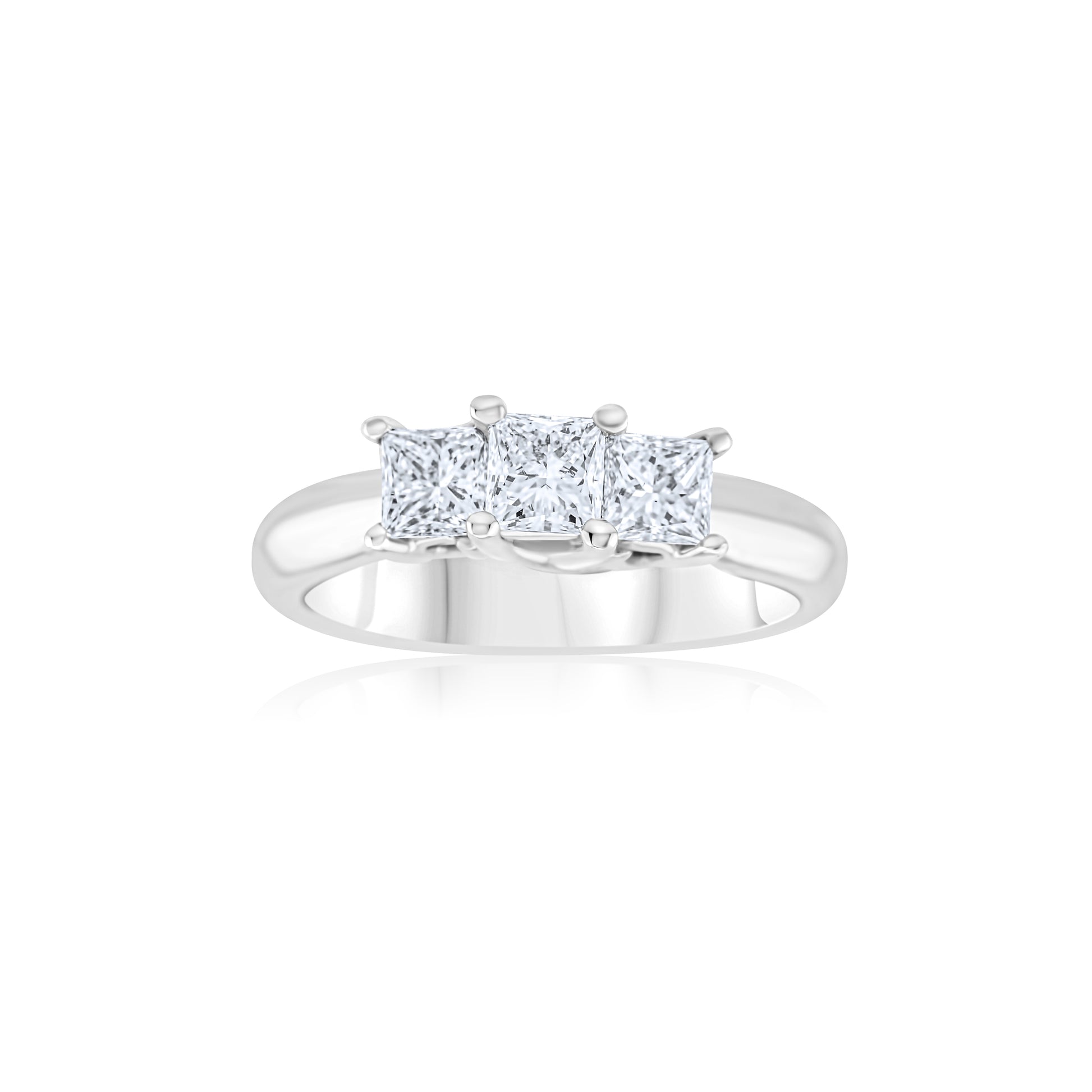 Three princess-cut diamonds shine in perfect harmony, symbolizing life’s most cherished moments. Radiant and refined, this design is a brilliant expression of love that lasts forever.