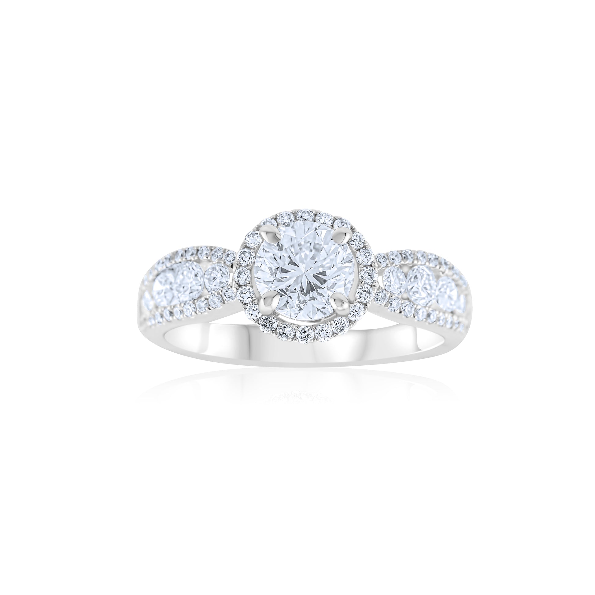 18K White Gold Round Diamond Halo Engagement Ring 1 ¾ Ct