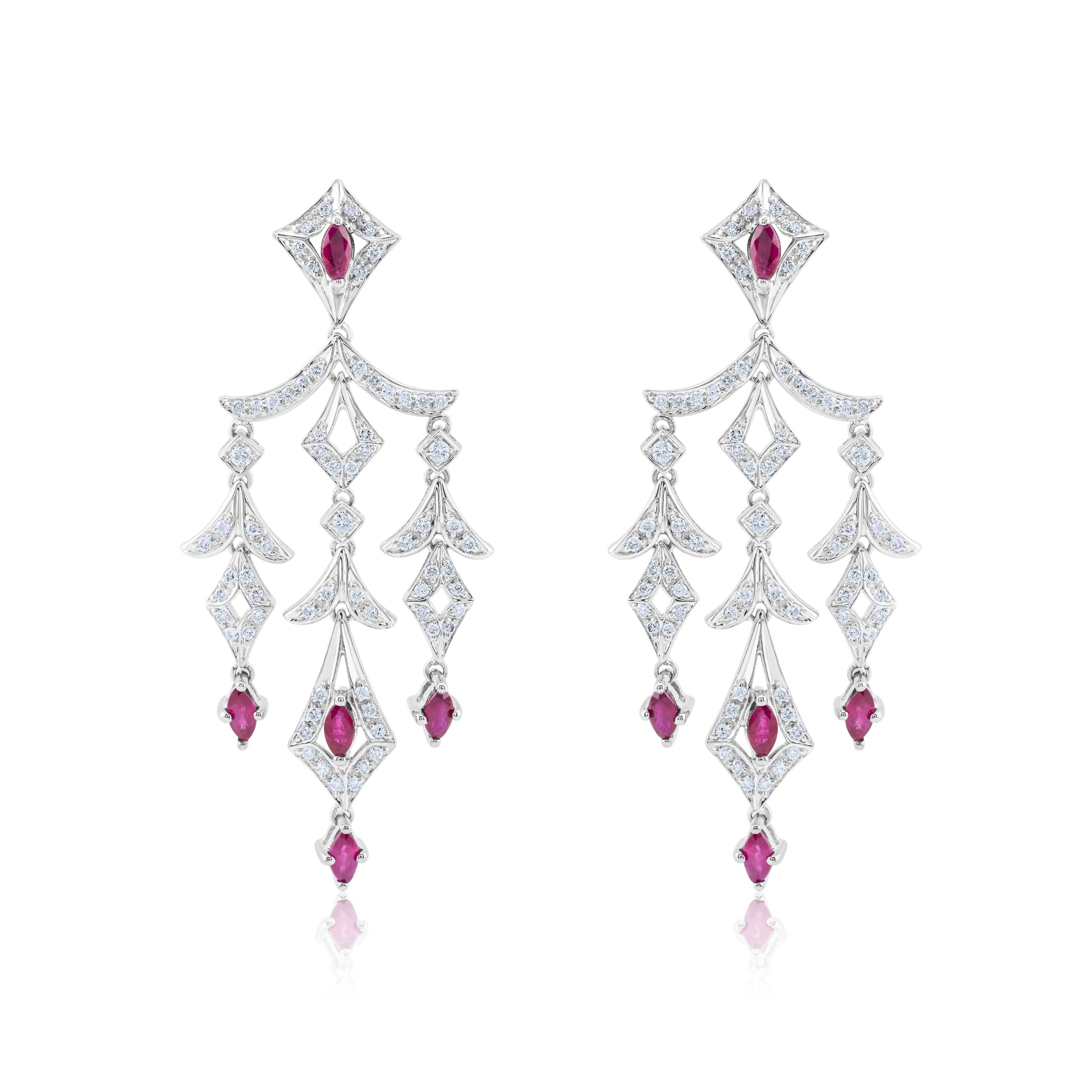 18K White Gold Ruby & Diamond Chandelier Earrings 3 Ct