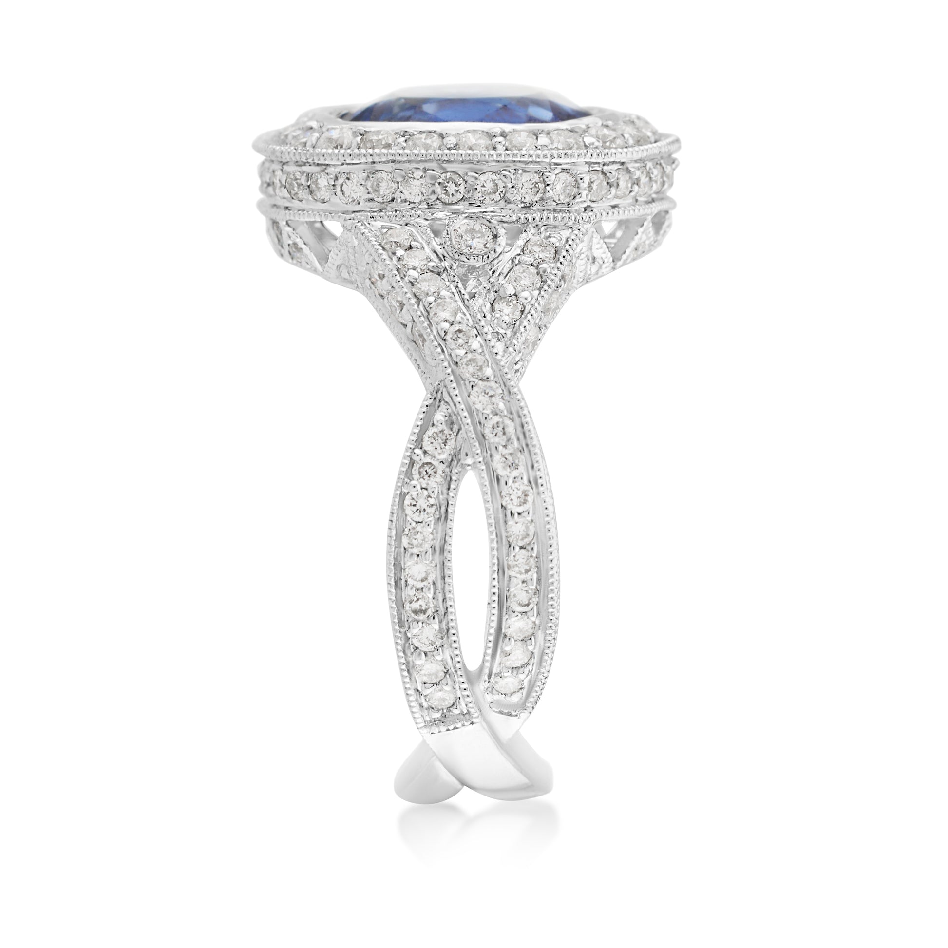 18K White Gold Sapphire & Diamond Right Hand Ring 4.15 Ct