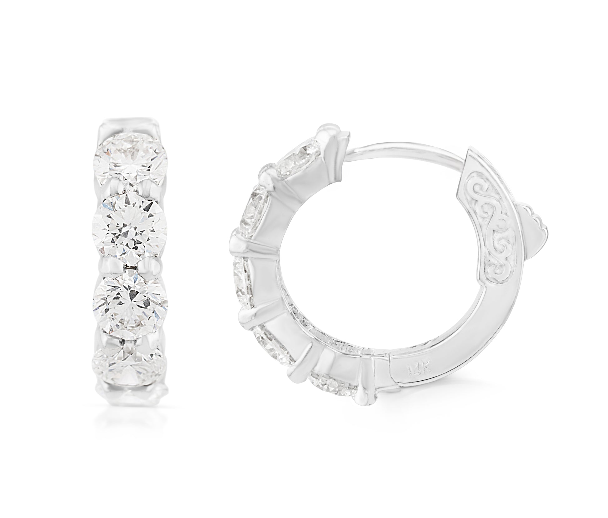 14K White Gold Lab Diamond Huggies Earrings, 3 Ct