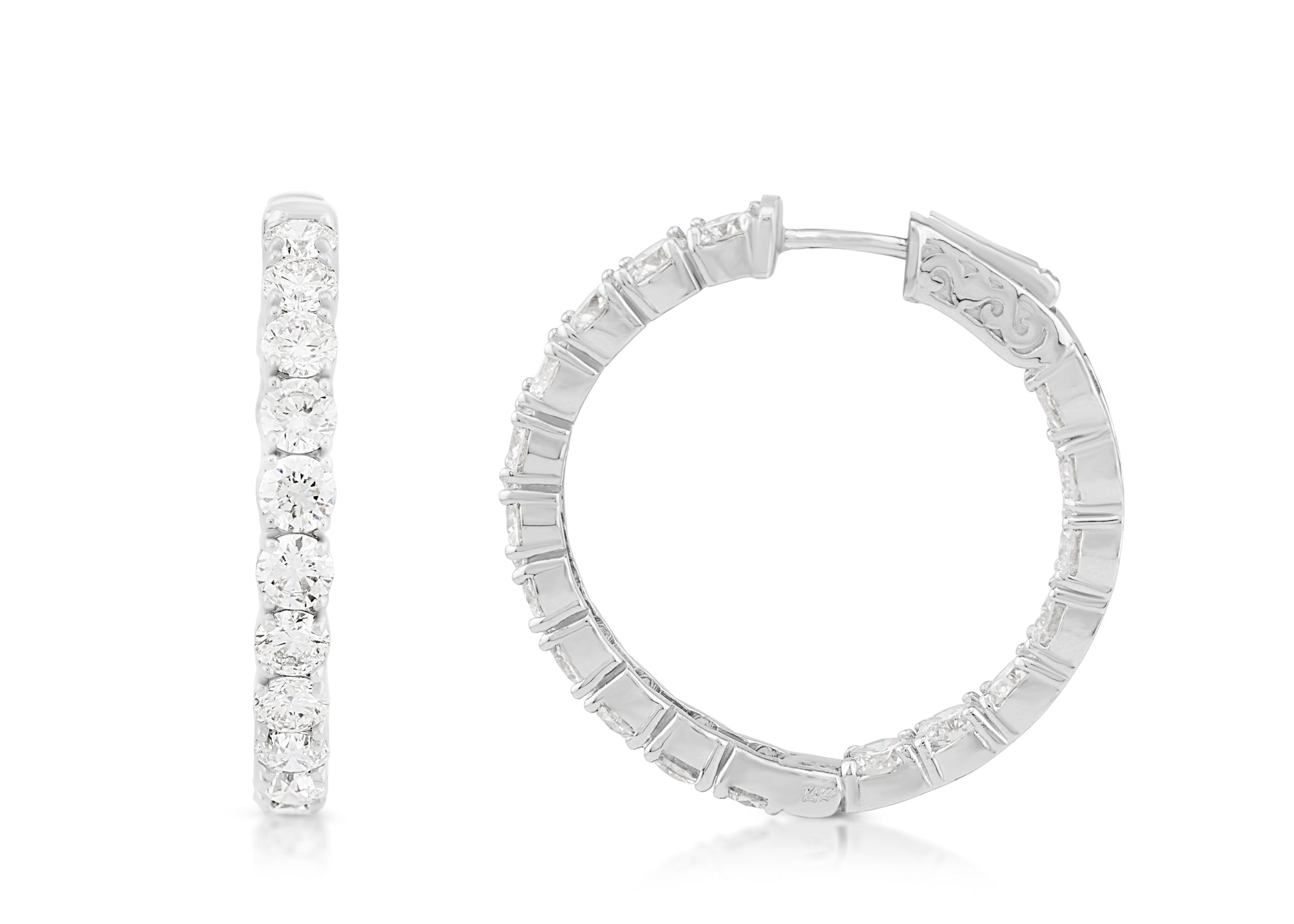 14K White Gold Lab Diamond Hoop Earrings, 6.25 Ct