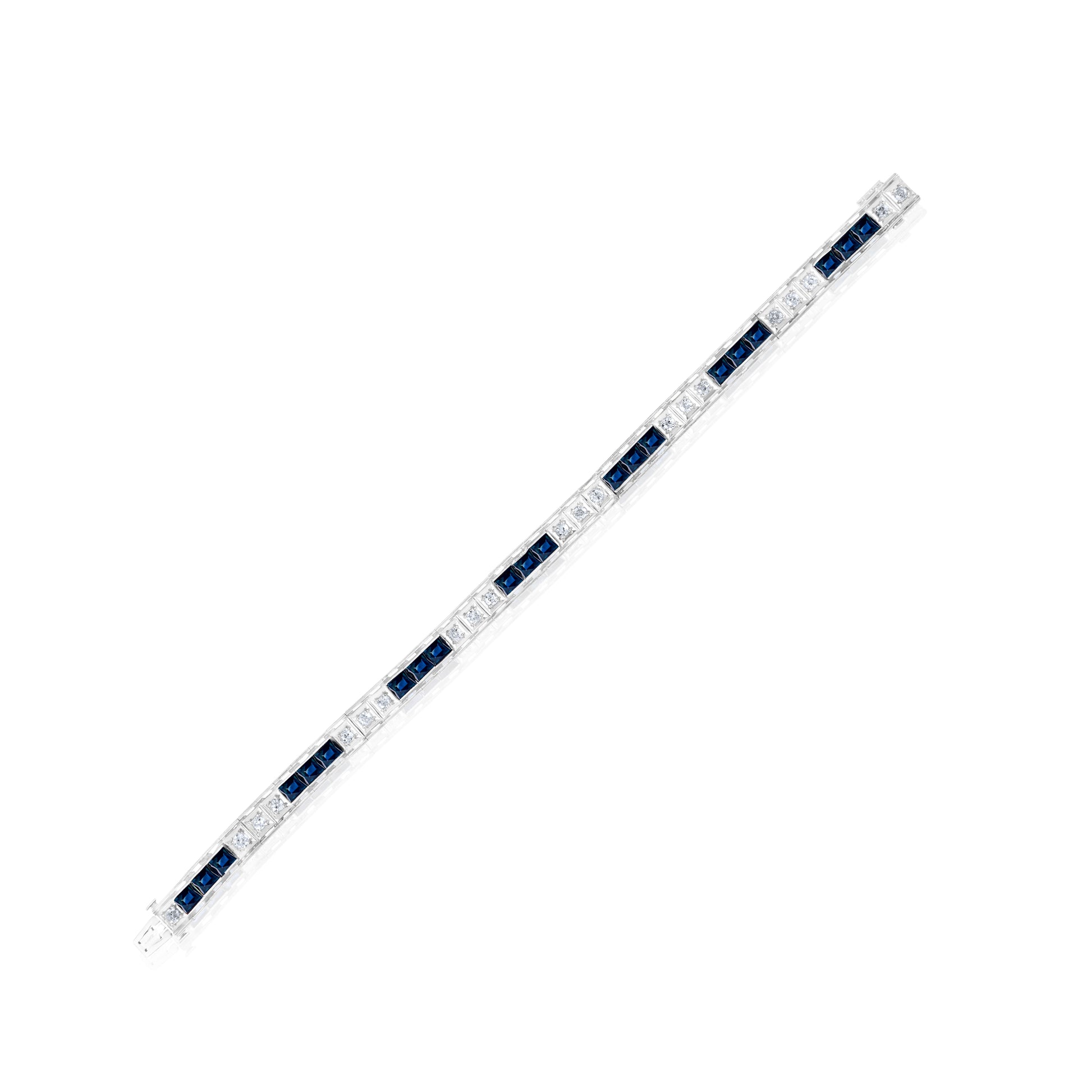 Platinum Diamond & Sapphire Art Deco Line Bracelet ~ 9 Ct